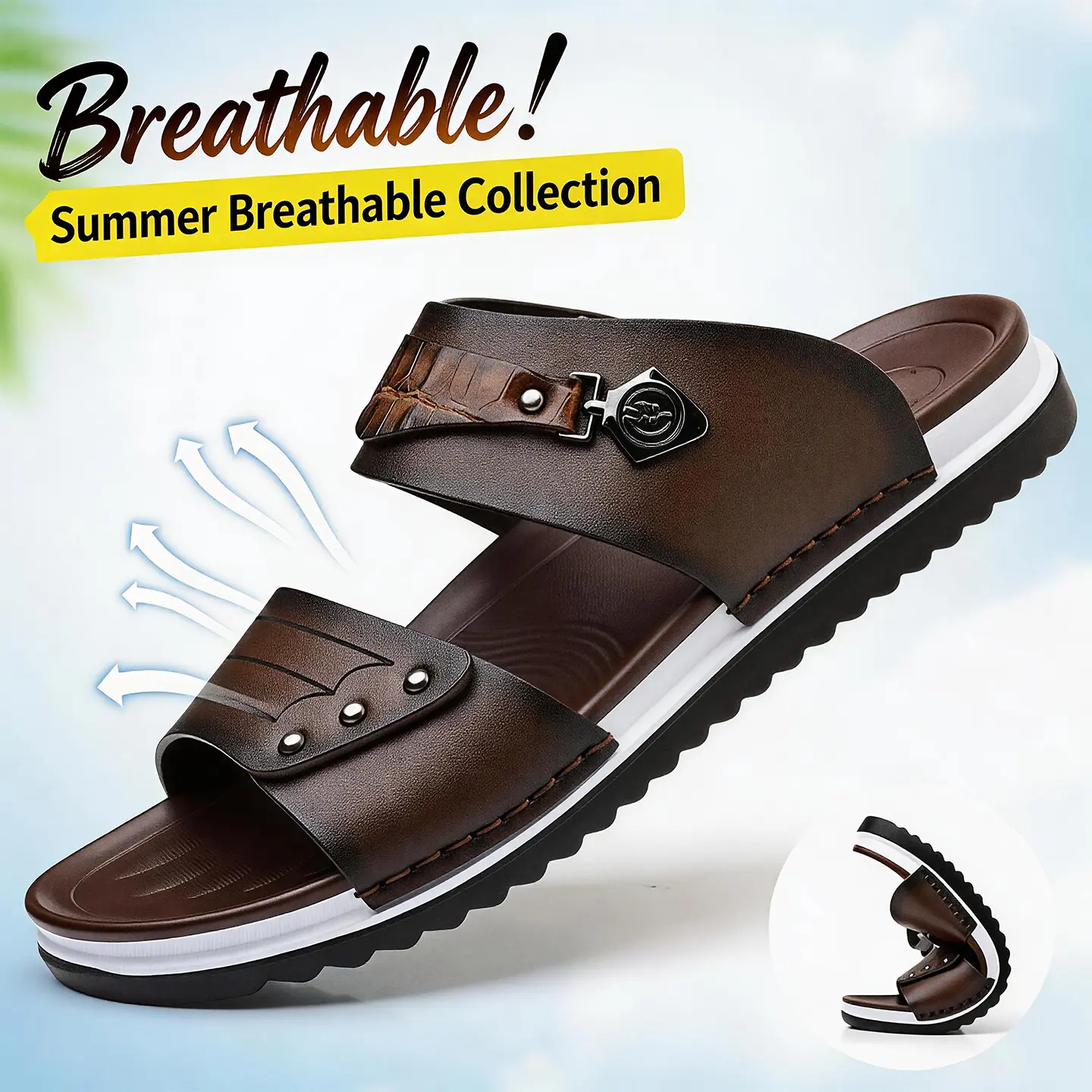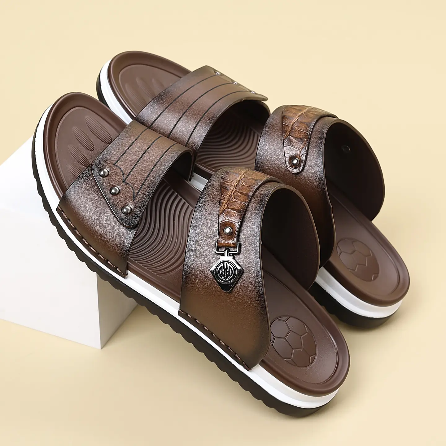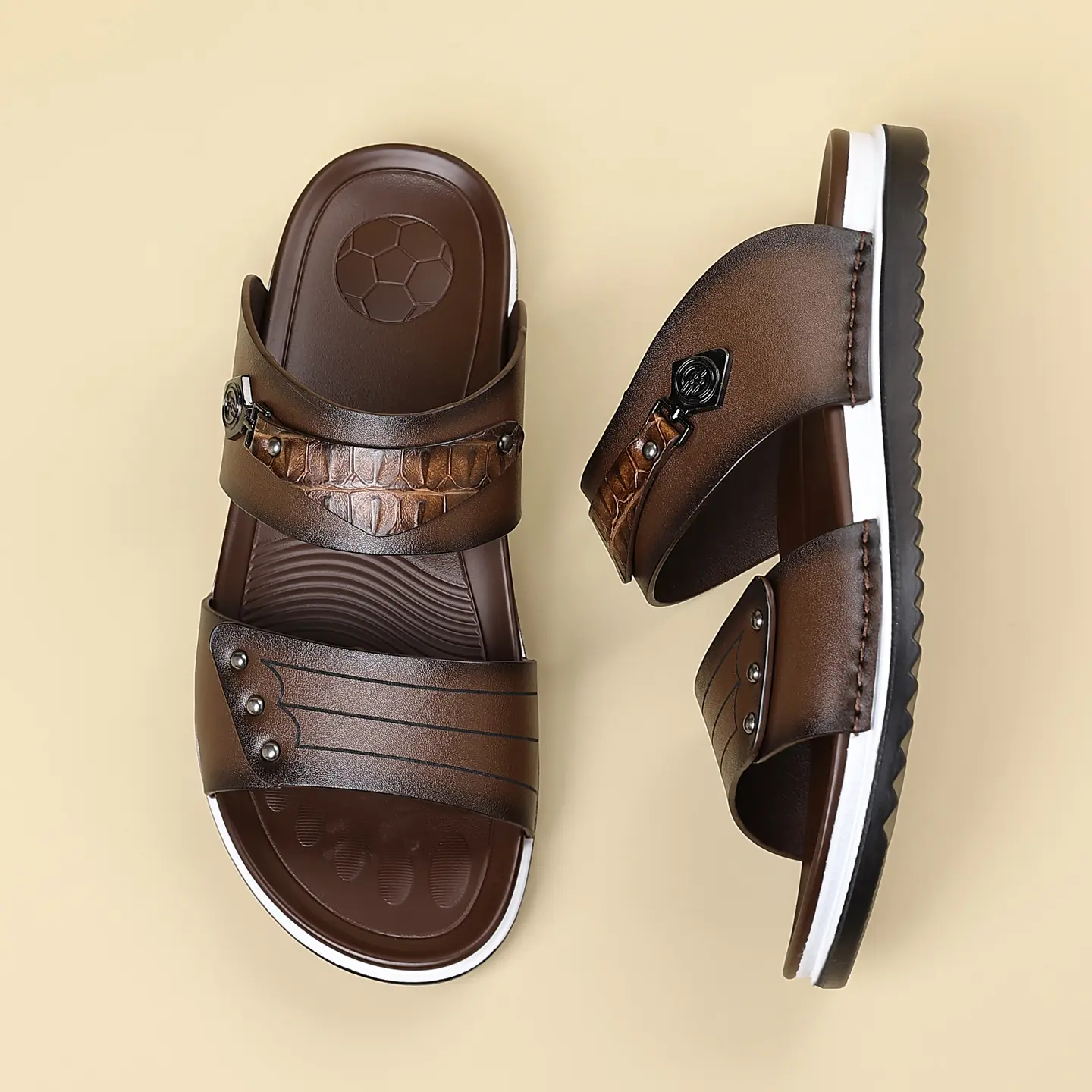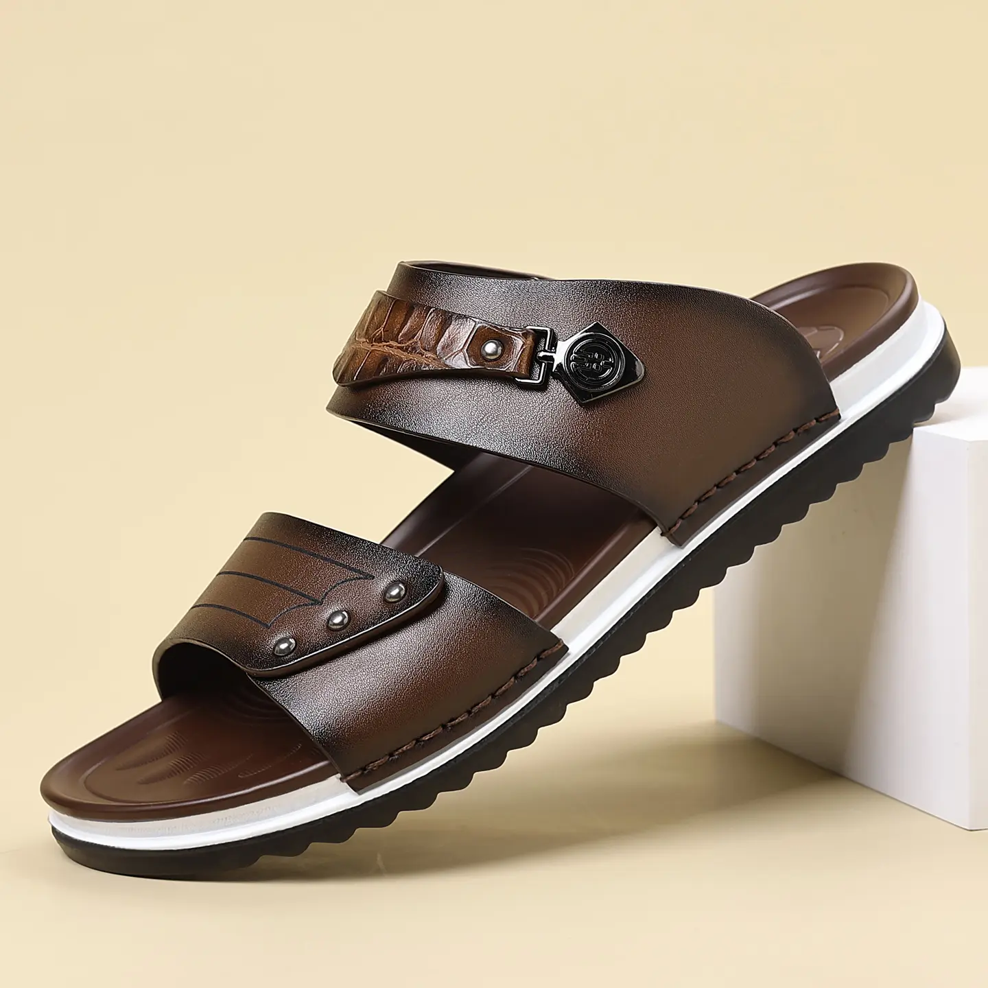 Water-Resistant Premium Vegan Leather Slides for Men | Quick-Dry Anti-Peel Outdoor Beach Sandals | Easy Clean Synthetic Footwear | sport flipflops daily