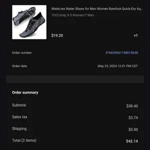 Quick shipping. Very comfortable. Great barefoot and water shoes.