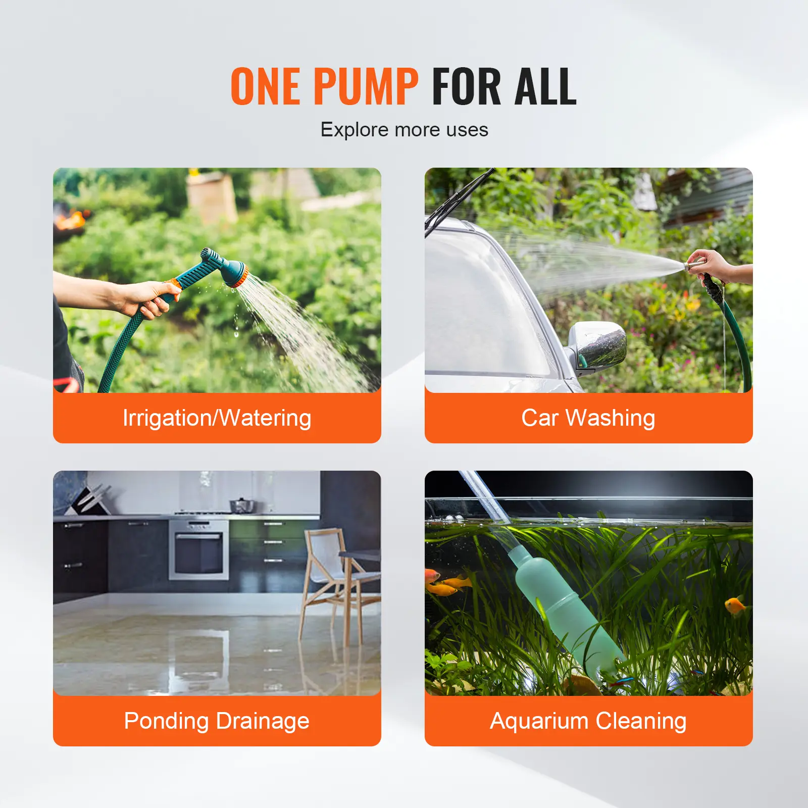 • Steady & Whisper-Quiet: The flat base design has a larger contact area with the ground, making the water transfer utility pump more stable throughout the operation. It keeps your pump secure in place without slipping or tipping and reduces noise.