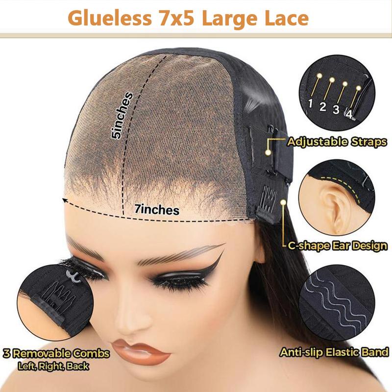 Lace size: 7x5 lace glueless wigs human hair