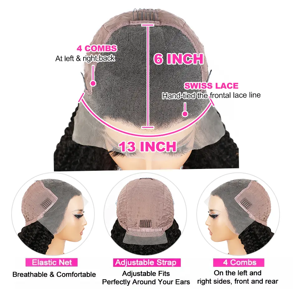 ·【Wig Cap Size】: The Cap is made of soft, breathable and stretchy material, curly wig human hair cap size (22.5 Inches) with 4 combs, also with adjustable straps can change it tightness to ensure a perfect fit around your head, very comfortable.