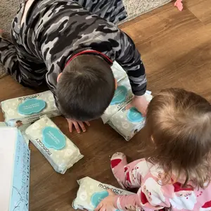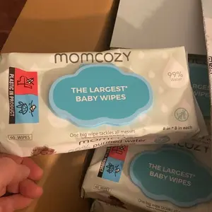 Regarding the ingredients, 99% pure water and a drop of coconut extract, our baby wipes are gentle enough for sensitive newborn skin. Plus, they're hypoallergenic and fragrance-free, making them a perfect conditioner. Momcozy's advanced 7-step purification is for added safety.