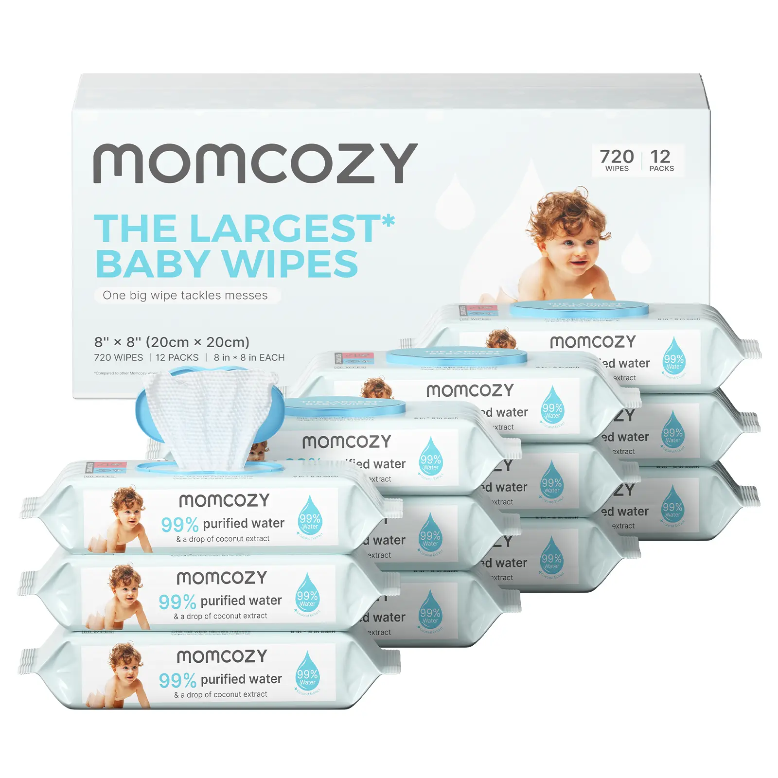 25% larger than other regular water wipes, our 8'' x8'' wipes easily handle any messes for everyday occasions, from little messy butts to heavier duties. It's a real game-changer for moms and their little ones!