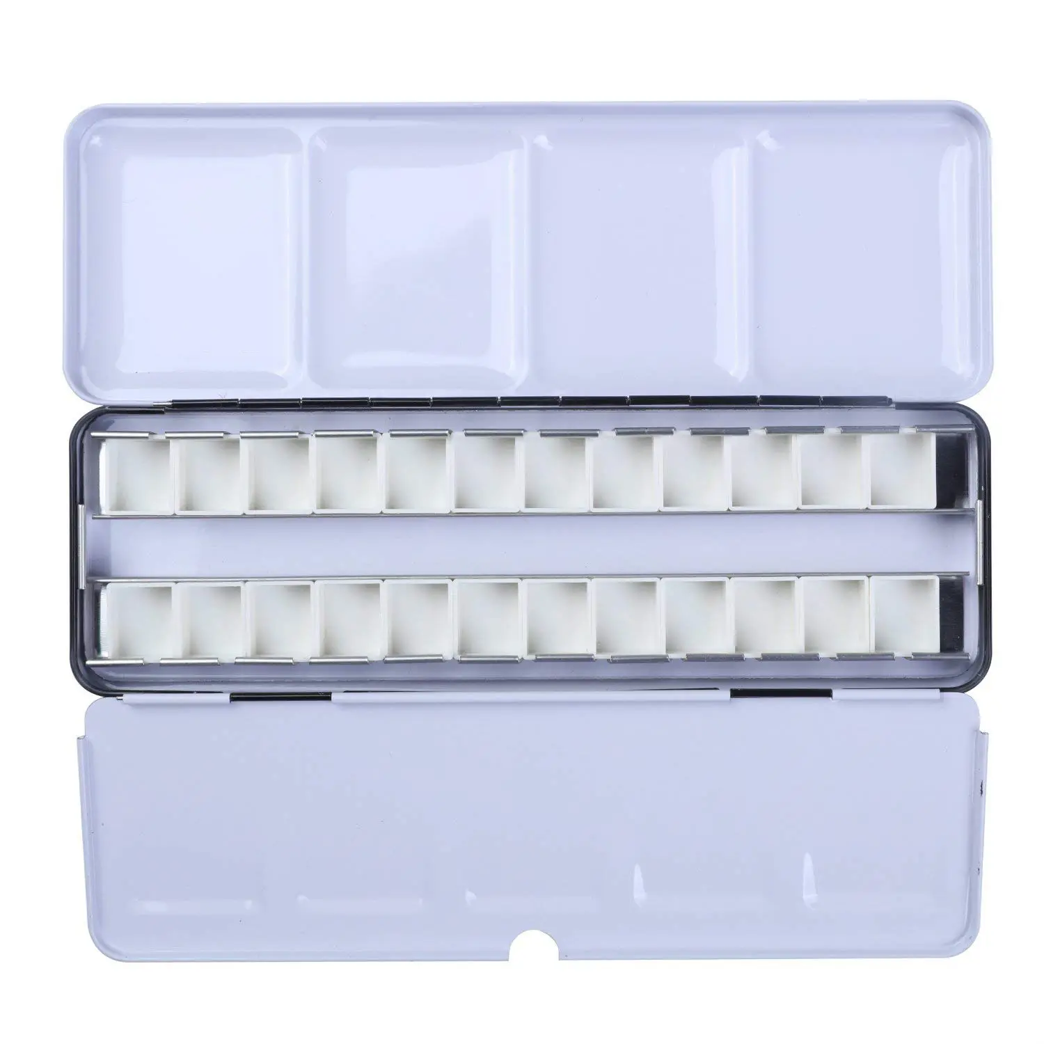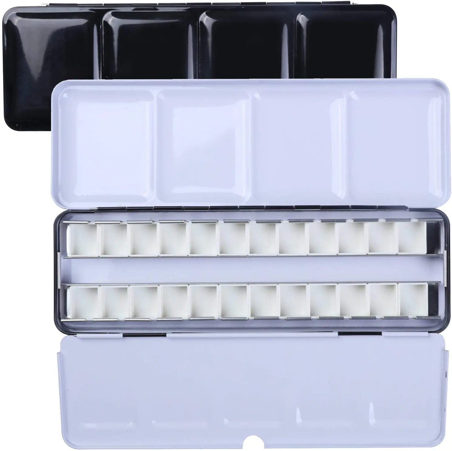 ·EMPTY WATERCOLOR HALF PANS: 26 pcs half pans/14 pcs half pans, 1.8 ml capacity and 20mm x 17mm x 11mm in size each, fit the metal tray nicely and easily removed for cleaning. Each pan is removable and can be refilled with your color of choice.