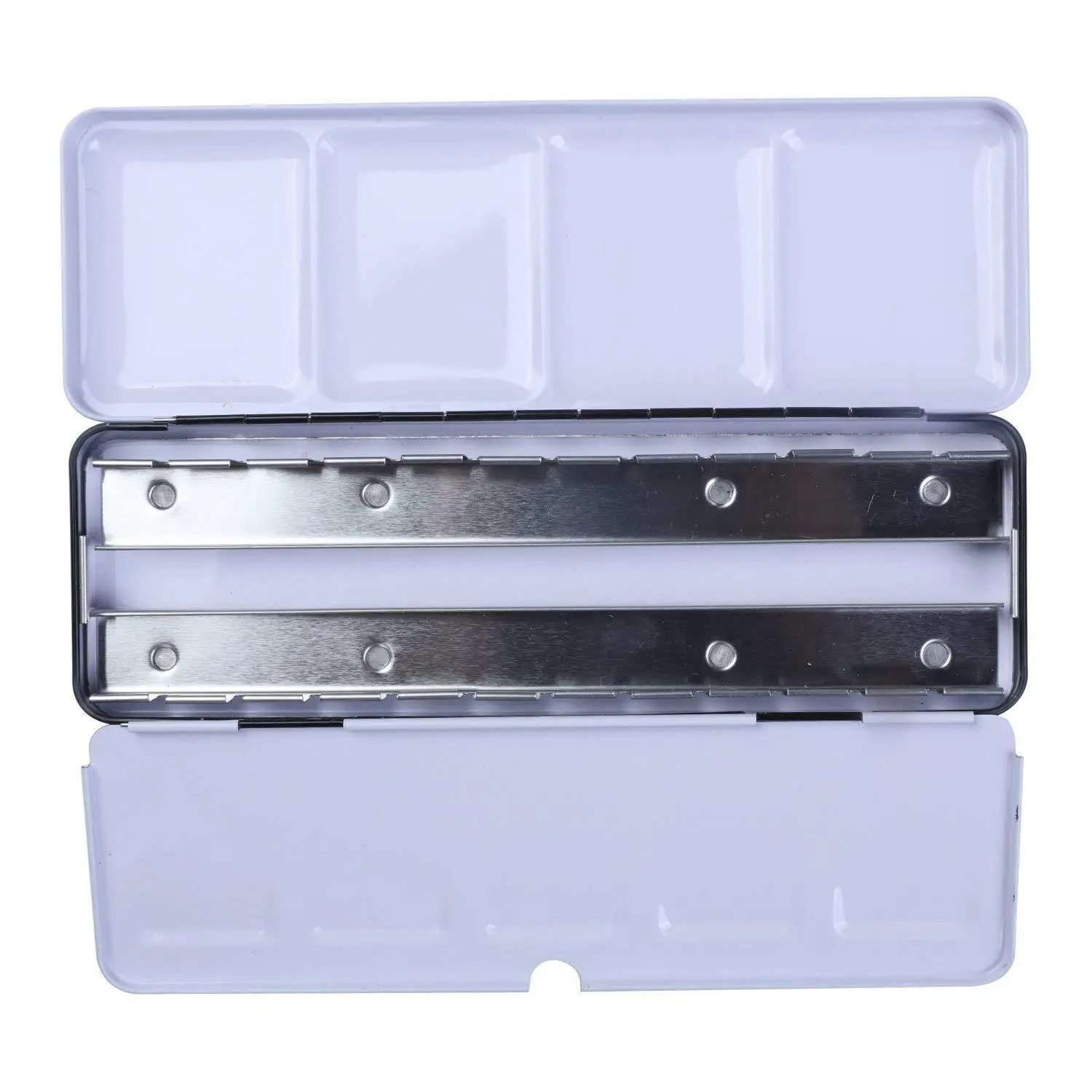 ·MANY MIXING AREAS: The white enamel lid and fold-out tray are used as a mixing palette. The watercolor tin edges are rolled there is nothing sharp. A metal folding ring on the back of the travel palette allows you to hook your thumb through and stabilize the palette while you paint.