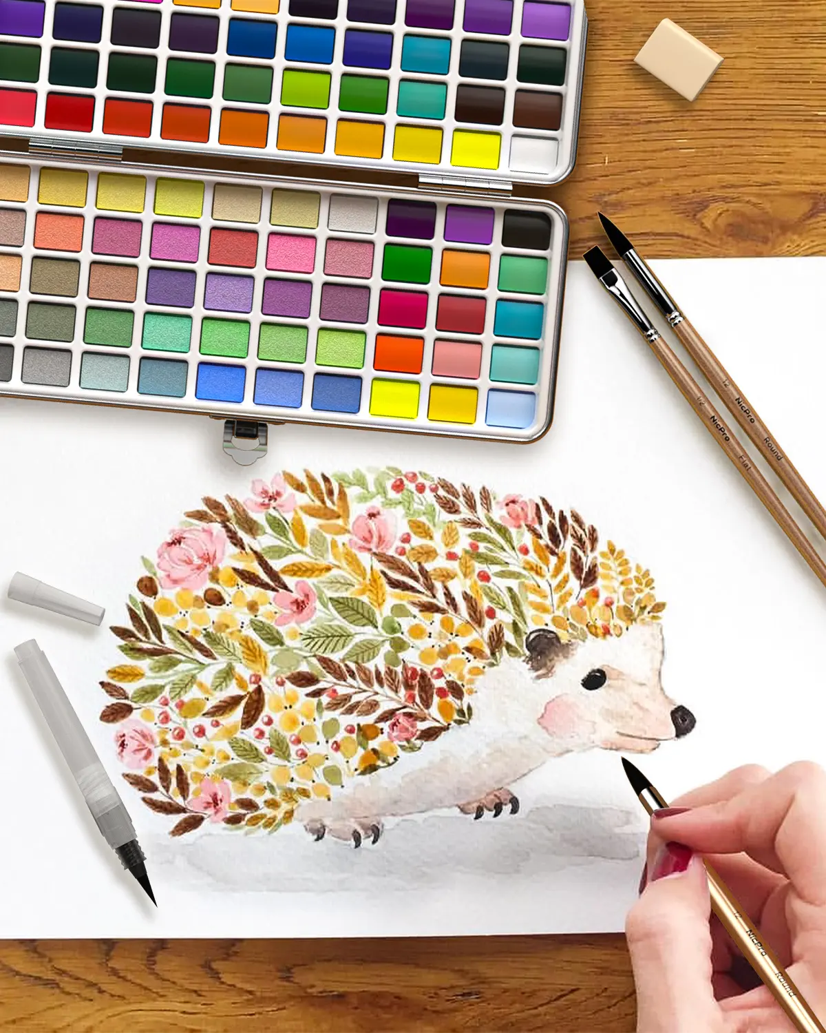 ·8 Squirrel Painting Brushes: Premium squirrel hair brushes for excellent absorption and elasticity.