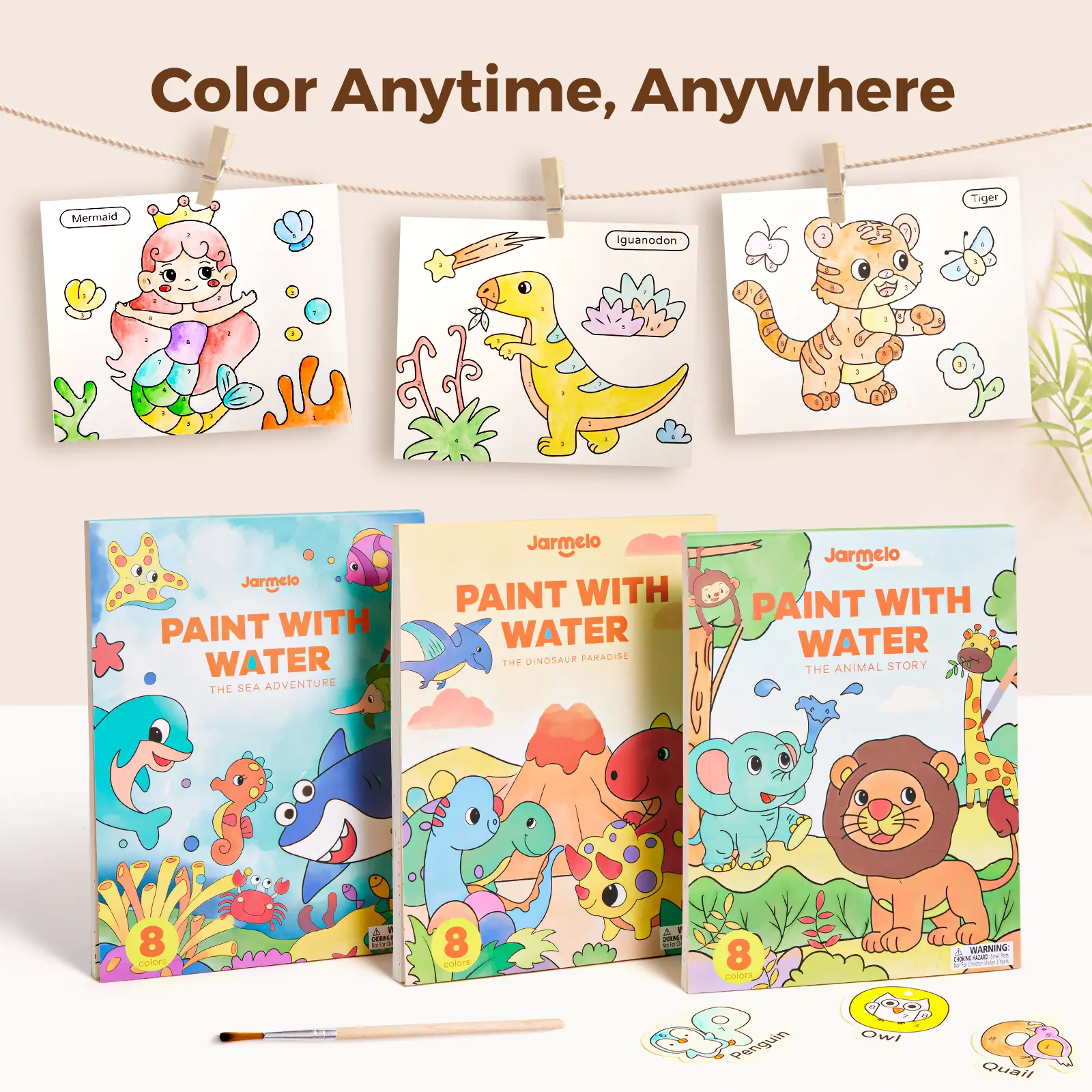 Mess Free Coloring: Innovative 3-in-1 Design, Combine paint, brush, and coloring books in a single package.Designed in bright colors, the size of the book is approximately 10.3 inches x 8.3 inches