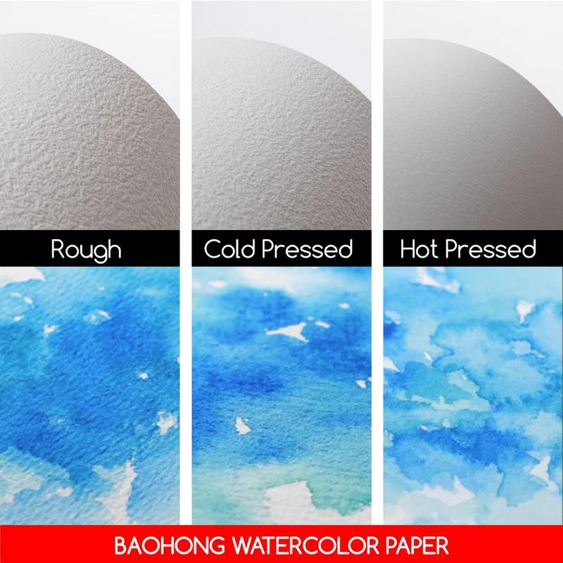 ·Cold-pressed Paper: Watercolor papers have a slightly textured surface, which is between that of rough and hot-pressed papers, allowing for a variety of watercolor techniques, and watercolor papers made from cotton would hold more color and with perfect water absorption.