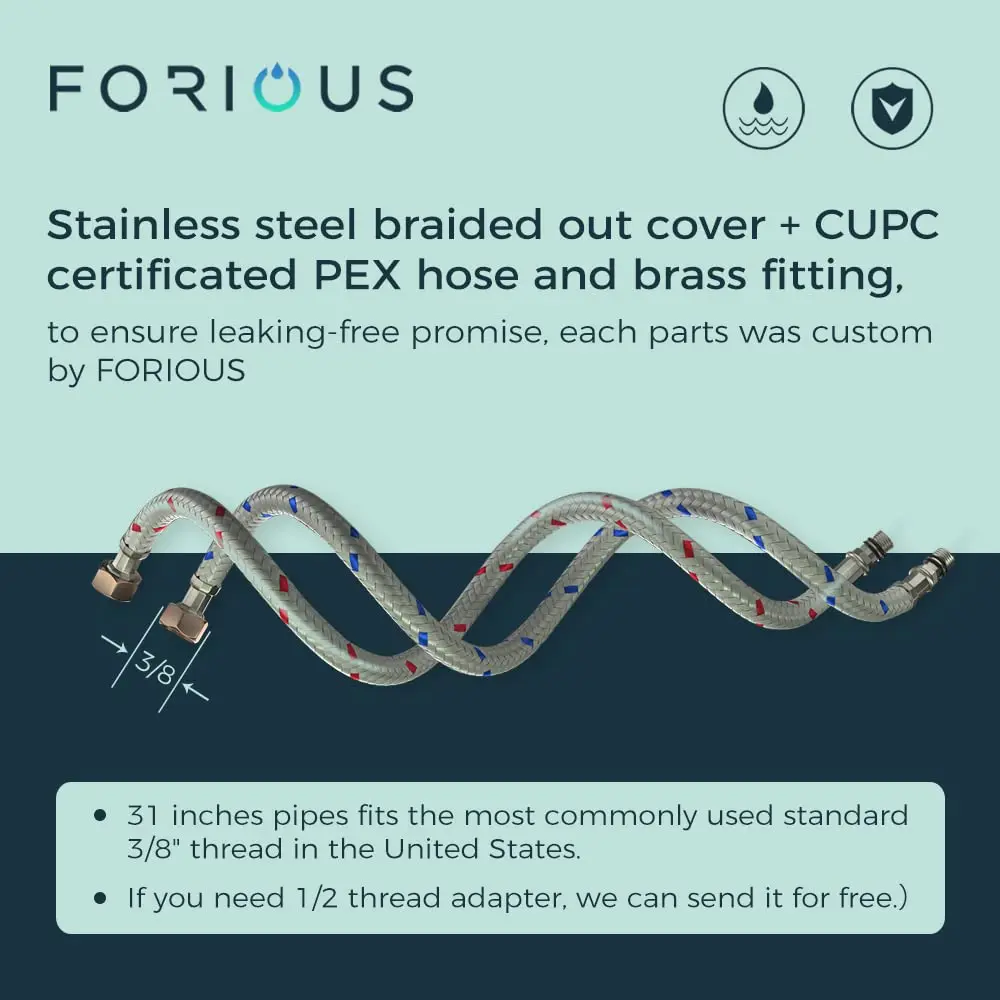 ·【Comprehensive Set】Our bathroom faucet set comes complete with 3/8" threaded hot and cold supply hoses, a metal pop-up drain, a built-in rubber ring, and US-standard fittings. (Complimentary 1/2" adapters available upon request.) 1/2" adapters available upon request.)