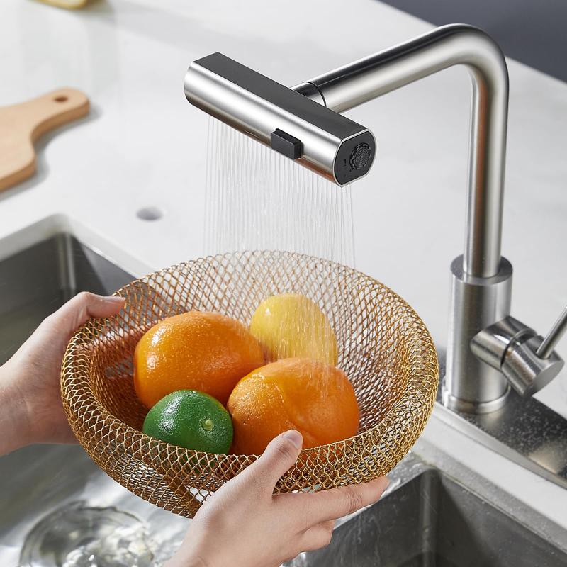 ·Unique Waterfall Design: Innovative waterfall head design, sleek and modern,Like the rainfall which gives you more wide coverage when washing. Waterfall kitchen faucet ads a amazing design flair and elegant in your kitchen, upgrading your kitchen.