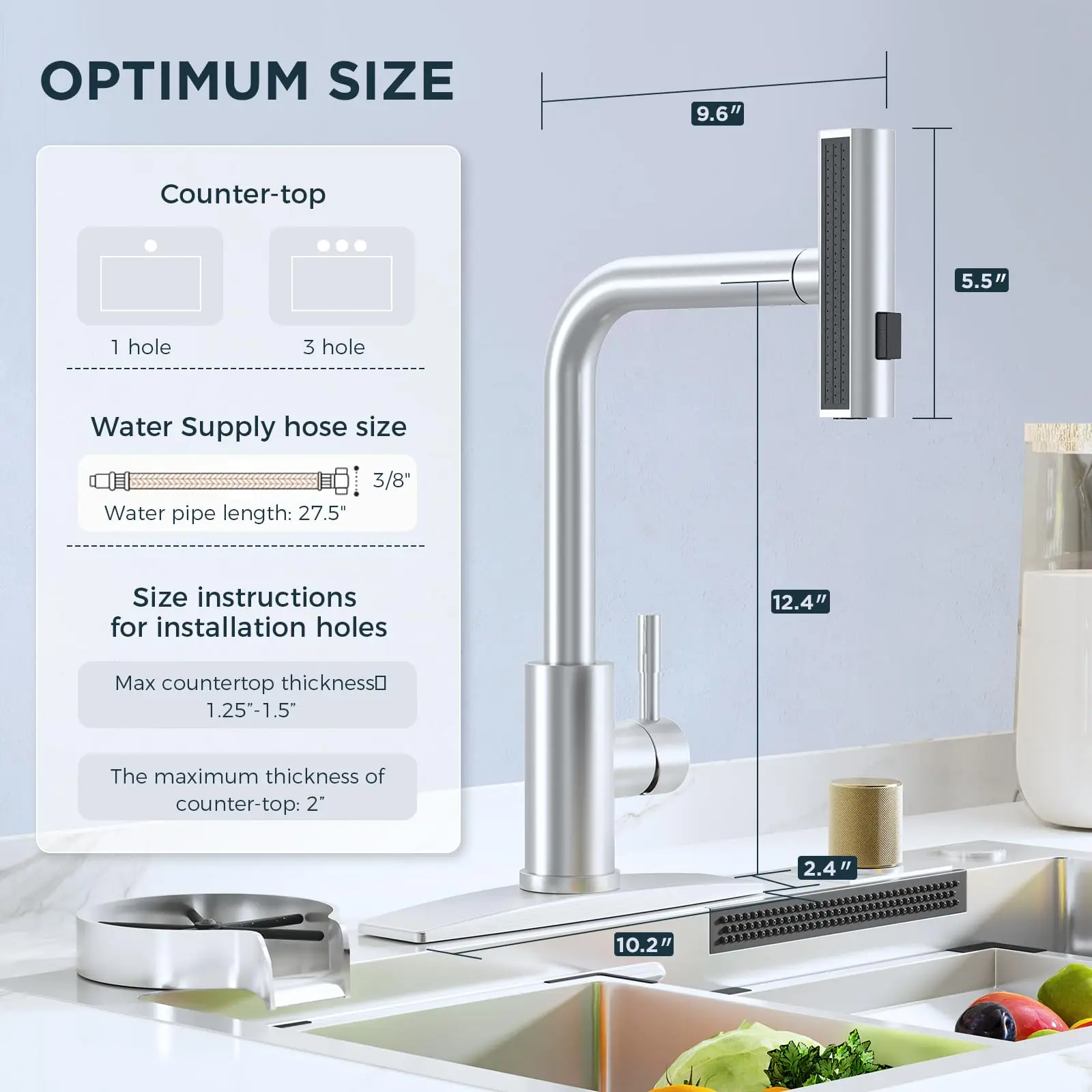 ·Simple Installation: Focus on user experience, the kitchen sink faucet is user-driven, completing with deck and pre-installed hoses, suitable for 1 or 3 hole installation. No plumber or specialized tools needed. Just a few simple steps to install the kitchen faucet,saving time and effort.