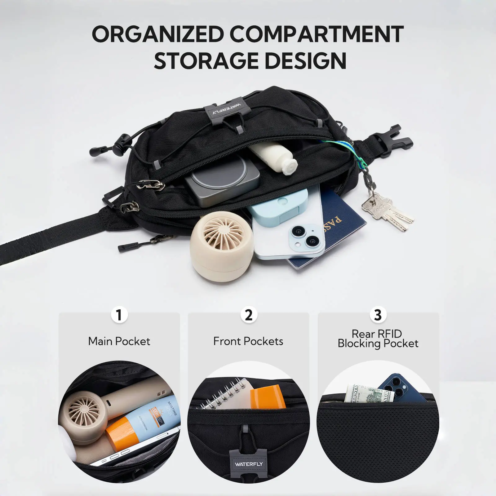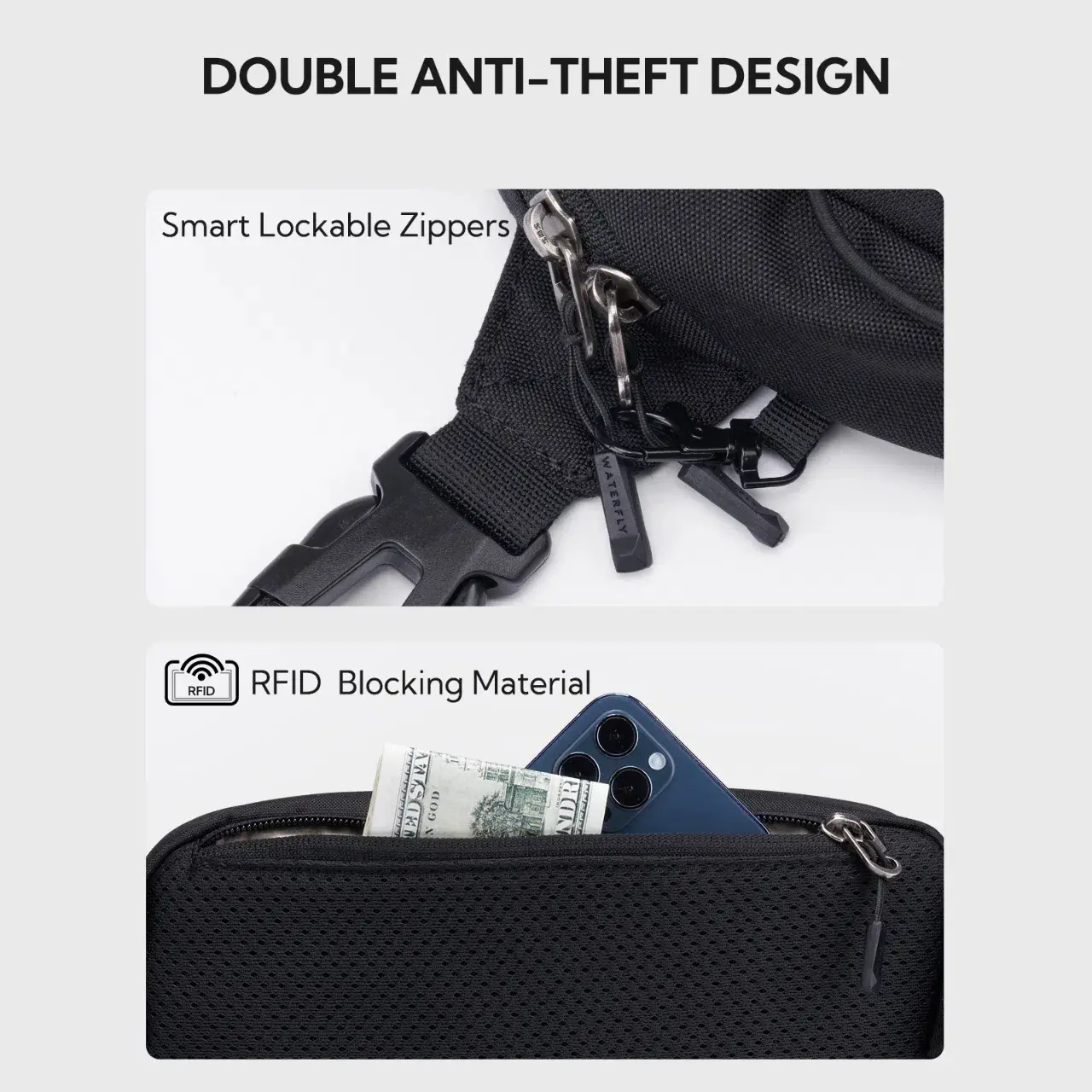 ·Dual Anti-Theft Protection for Valuables: Includes lockable front zipper and hidden rear pocket with RFID-blocking material, protecting valuables from theft and electronic skimming.