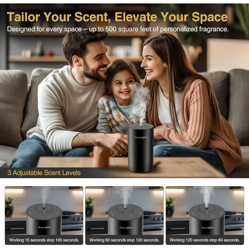 Discover the Magic of Waterless Aromas: Experience the true aroma of pure essential oils with advanced nebulizing technology-no water, no dilution, and no frequent cleaning.The ultra-fine mist disperses quickly, effectively eliminating odors and filling your space with long-lasting fragrance