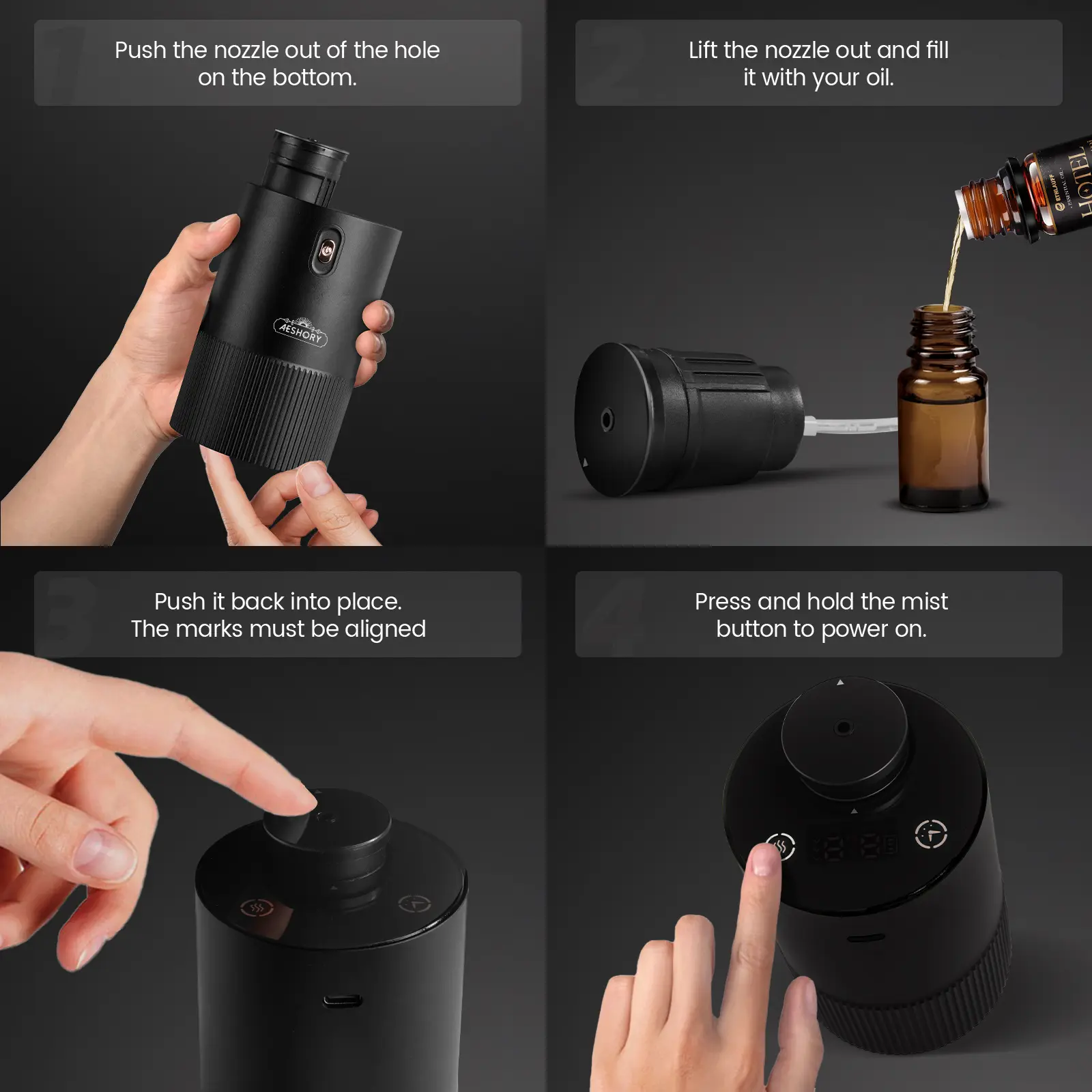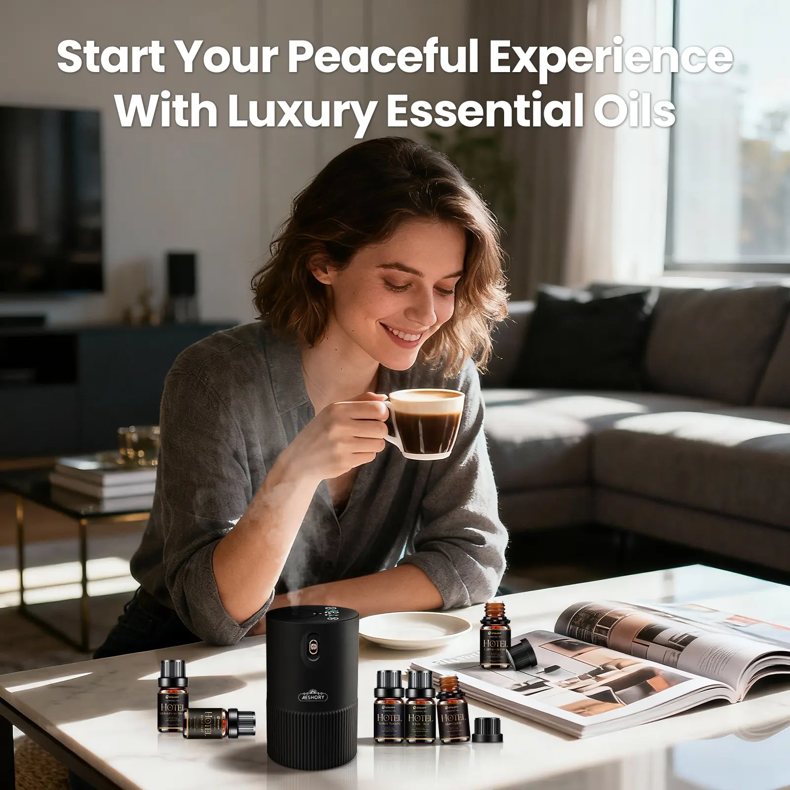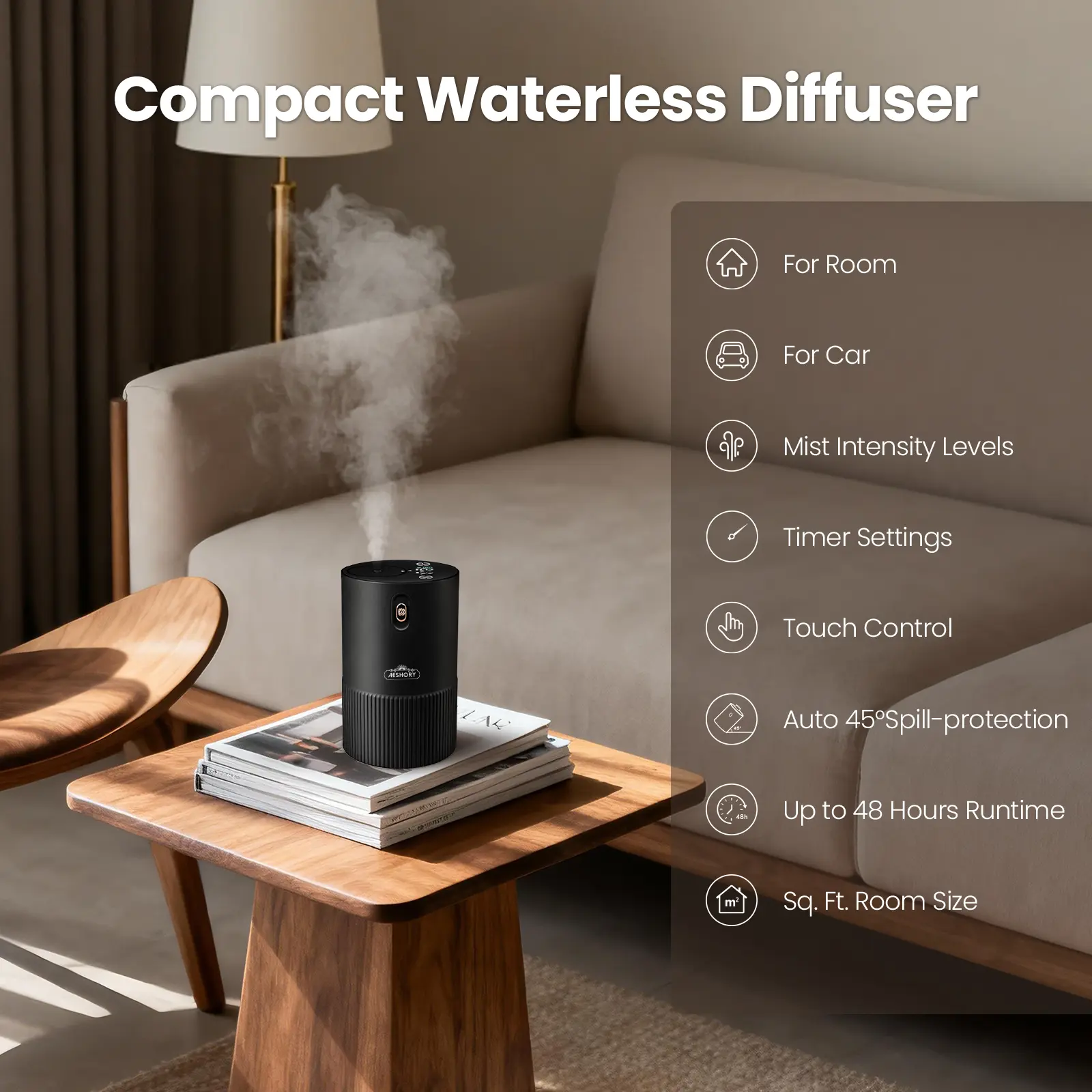 AESHORY Waterless Essential Oil Diffuser Starter Kit with Hotel Fragrance Oil Battery Operated Mini Scent Diffuser, Portable Aromatherapy Diffuser for Home, Car, Office (Black)