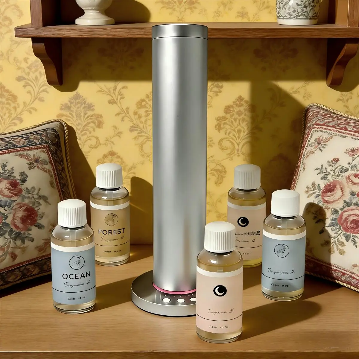 ·Versatile for various environments and comes with five dedicated 50ml oil bottles. This adaptable fragrance diffuser is ready to enhance any space—from hotel lobbies and retail stores to home offices and living rooms. The included 50ml fragrance bottles are sized to suit the device’s performance. For long-term use, you can easily refill it with your favorite essential oils to match different moods, seasons, or occasions.