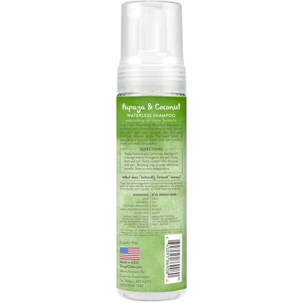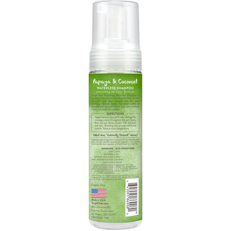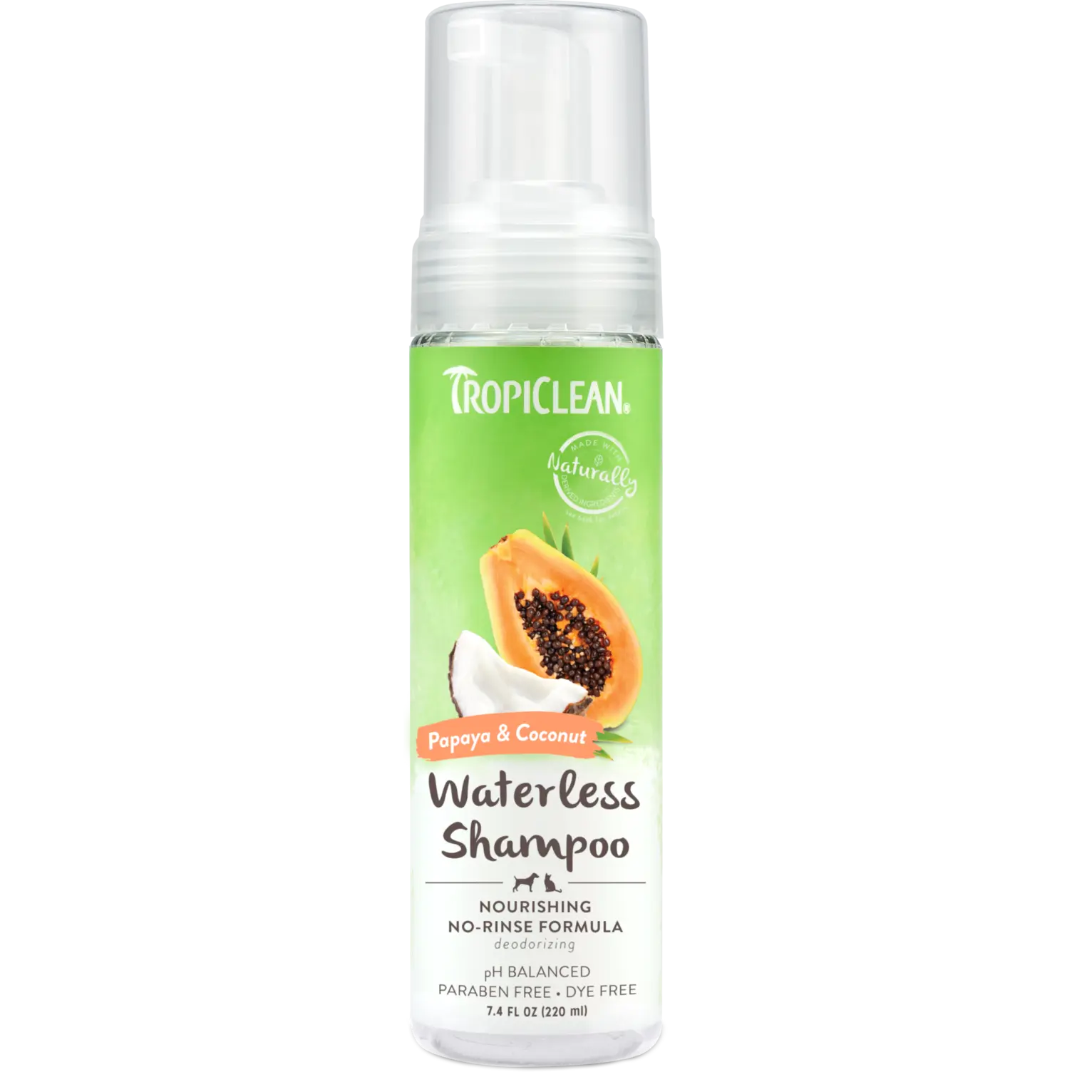 No bath? No problem! TropiClean Papaya & Coconut Waterless Pet Shampoo delivers a quick, nourishing clean—no water required, a convenient addition to your pet grooming routine. This no-rinse formula gently lifts away dirt while hydrating skin and coat, leaving your pet fresh, soft, and ready for cuddles. Perfect for busy days or post-adventure touch-ups, it’s infused with a refreshing tropical blend of papaya, coconut, and kiwi extracts for a silky, healthy finish.