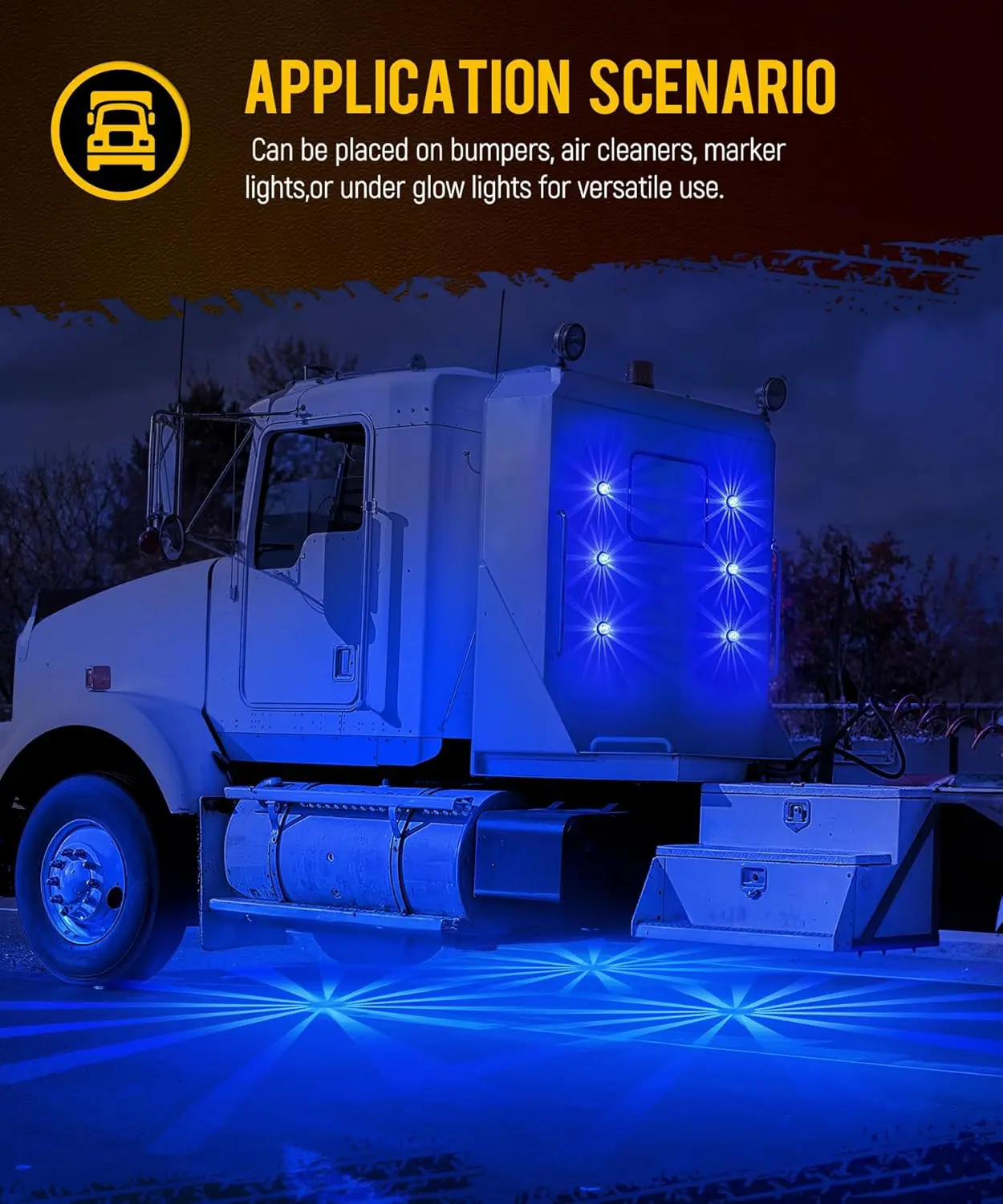 ·[Wide Application] The watermelon lights can be placed on bumpers, air cleaners, marker lights, or under glow lights for versatile use