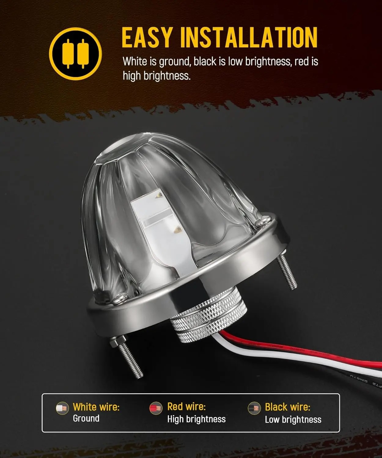 ·[Easy Installation] White is ground, black is low brightness serves as side marker lights, red is high brightness serves as turn signal lights