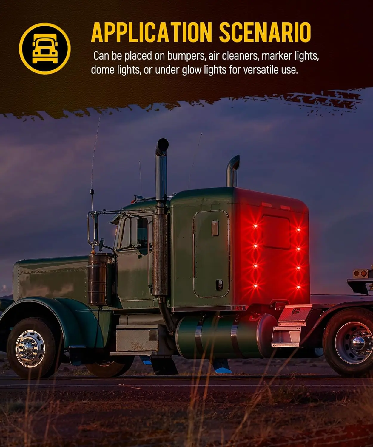 ·[Wide Application] The watermelon lights can be placed on bumpers, air cleaners, marker lights,or under glow lights for versatile use