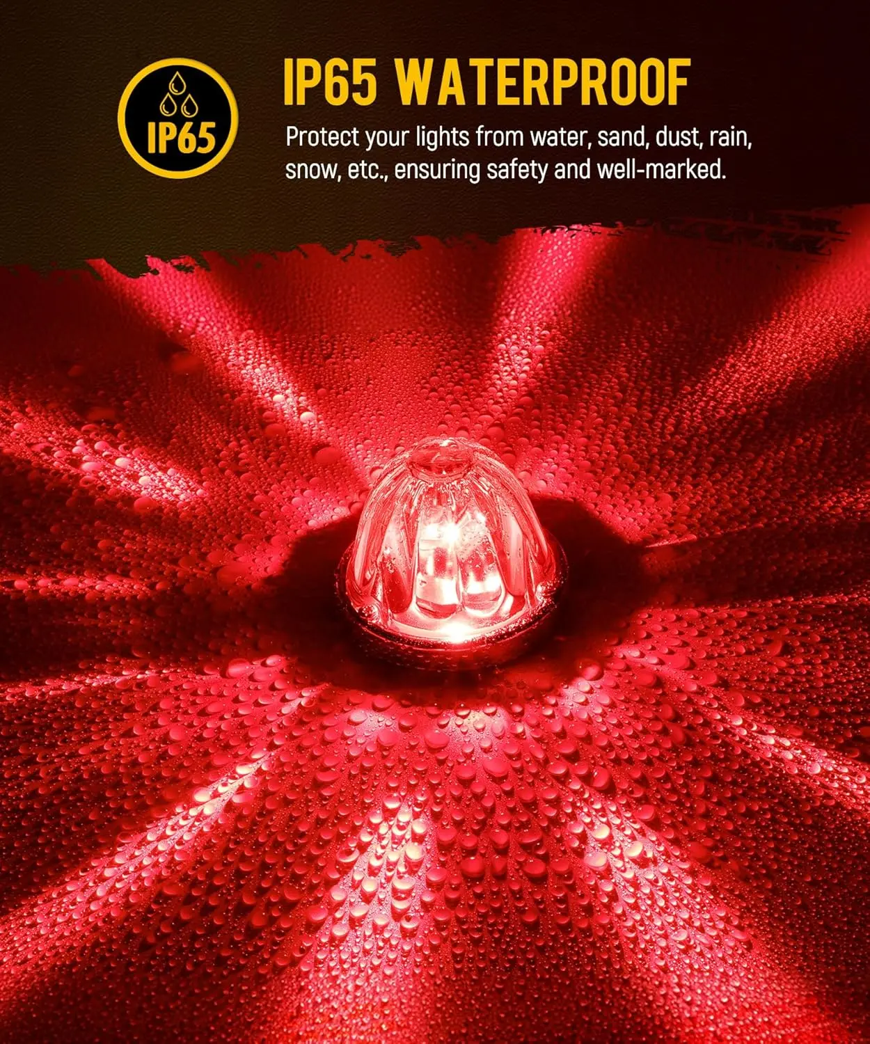 ·[IP65 Waterproof] Sealed lens with metal bezel, protect your light from water, sand, dust, rain, snow, etc., ensure safety and well-marked