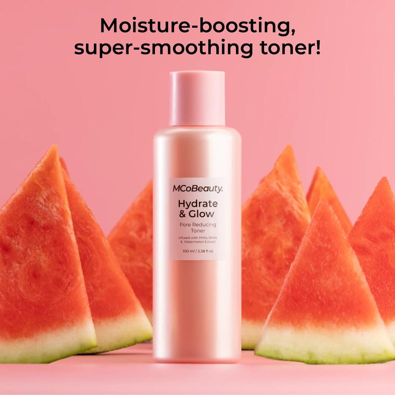 MCoBeauty HYDRATE & GLOW PORE REDUCING TONER is a multi-use toner that gives your skin a dewy, bouncy look and preps it for makeup application. With consistent use, this formula contributes to a plumper skin appearance with fewer visible pores. It's perfect to apply before makeup, helping to create a supple and hydrated base for glowy looks.