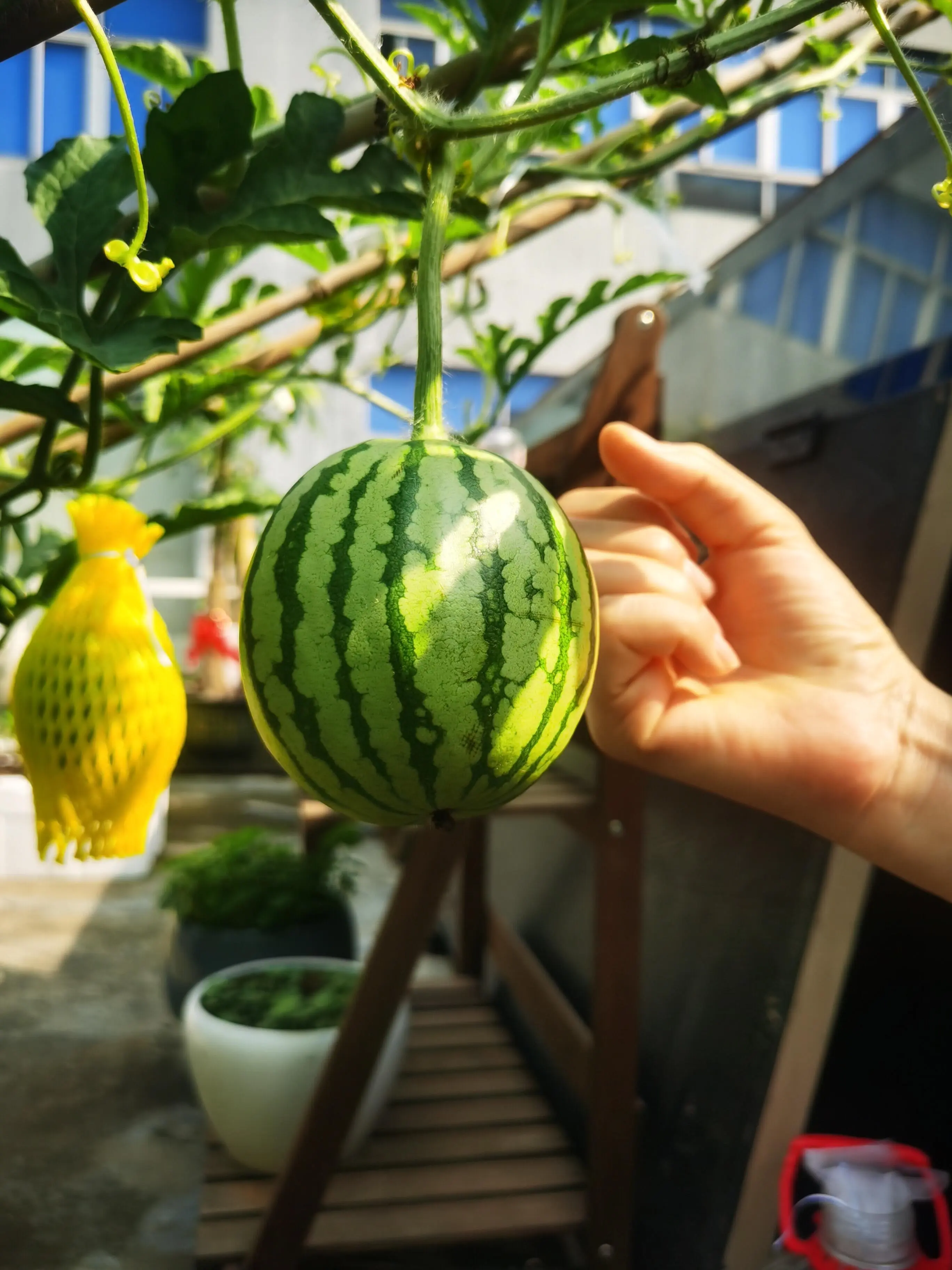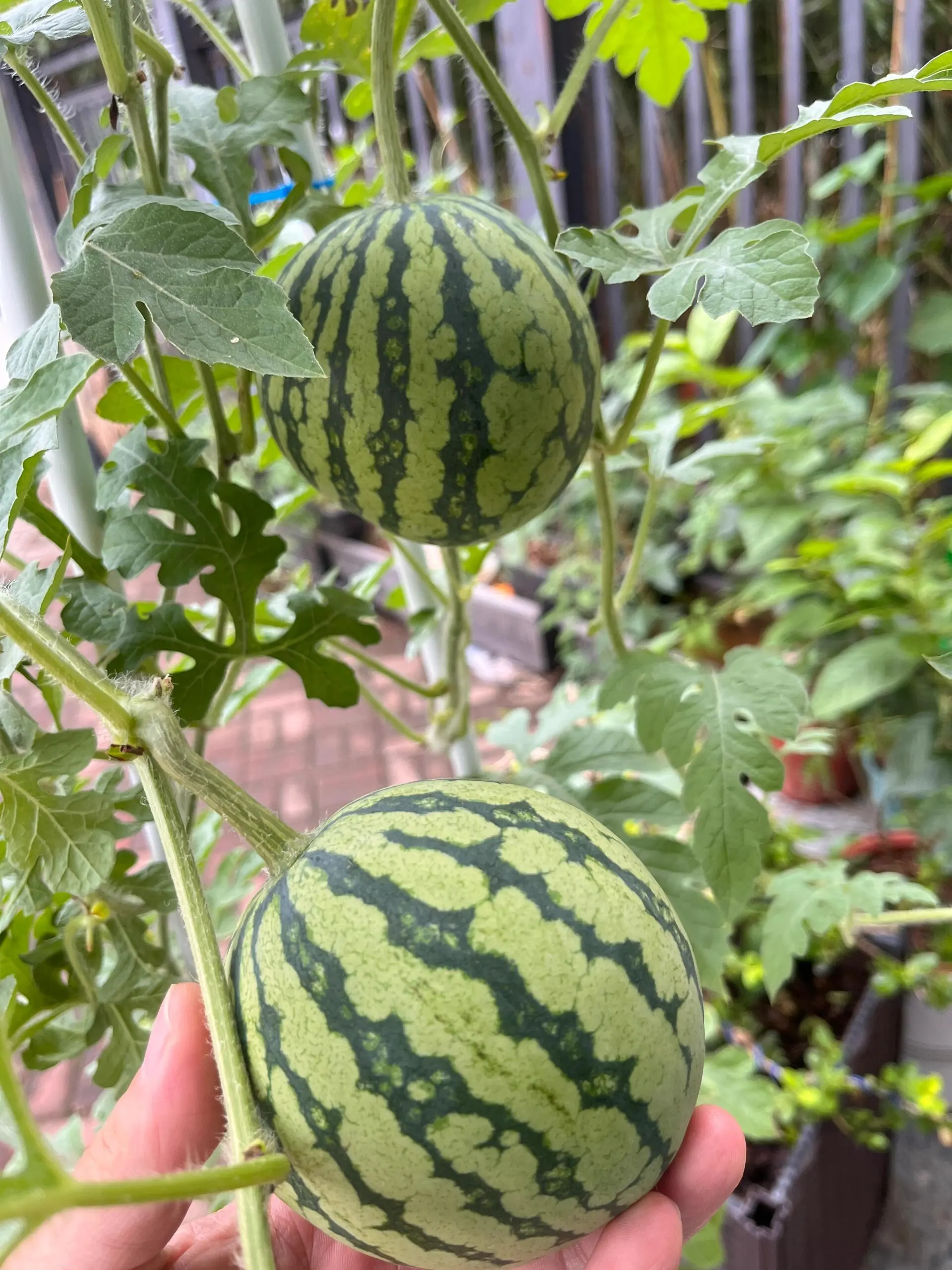 Super sweet and juicy organic variety #NonGMO#PottedWatermelon#WatermelonInAPot#BalconyGardening#SmallSpaceGardening#PatioGardening#GrowWatermelonAtHome#WatermelonHarvest#PlantProgress#GardeningHacks#PlantTok#GrowYourOwn#SummerGardening