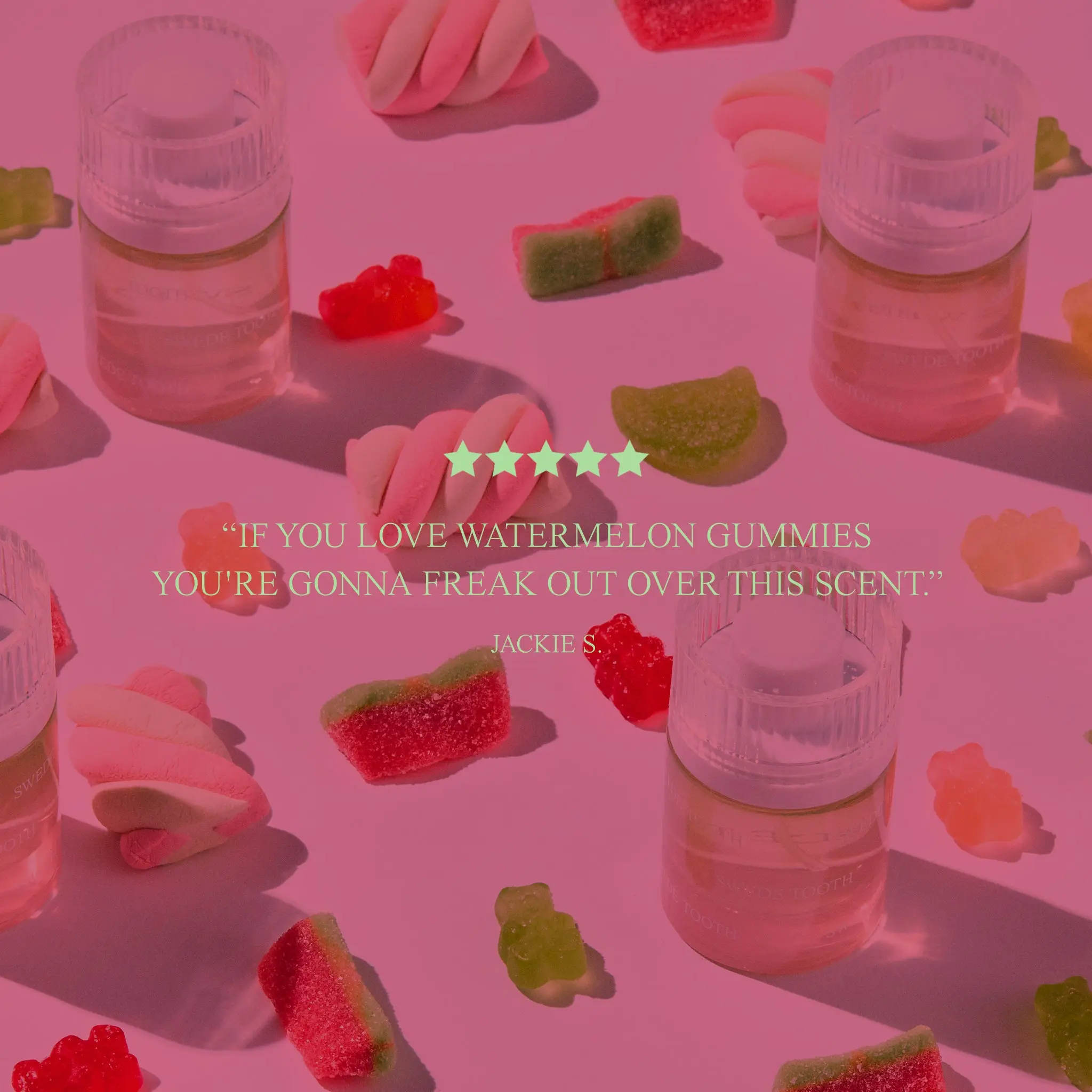 This scent is to die for! It does smell just like watermelon sour candy, but in a way that just feels balanced, complex and luxurious. It’s strong but not overpowering, so 1-2 sprays is all you need to smell mouthwatering all day long and then some. Highly recommend!