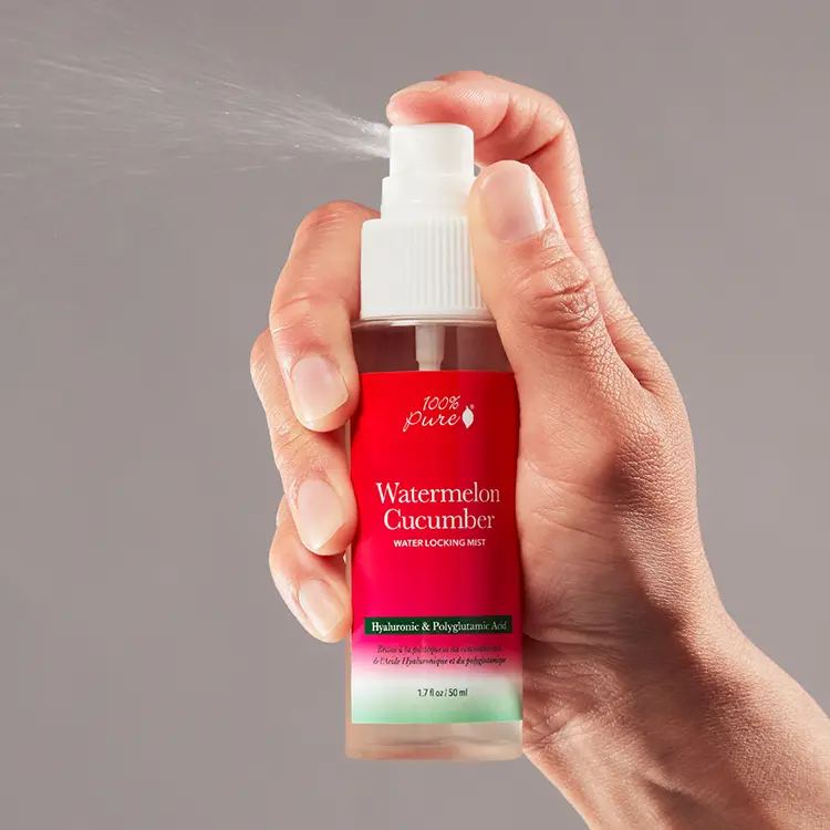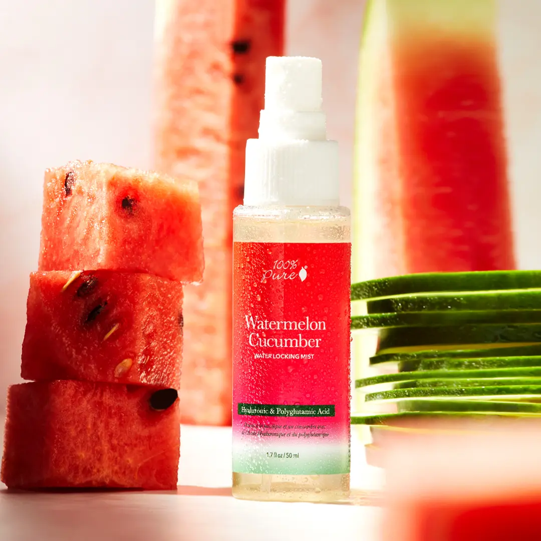 Only $10 for a summertime must-have?! Yes, please! 🌞  Our Watermelon Cucumber Water Locking Mist is packed with hydrating goodness - watermelon, cucumber waters, and hyaluronic acid from sweet potatoes to plump, rejuvenate, and smooth your skin. Perfect for refreshing your complexion and staying hydrated all day long. 🍉 Grab it at this price while it's available during our Semi-Annual Sale! 🎥: ave_lexi #100percentpure#summerskin #skincareroutine #cleanbeauty