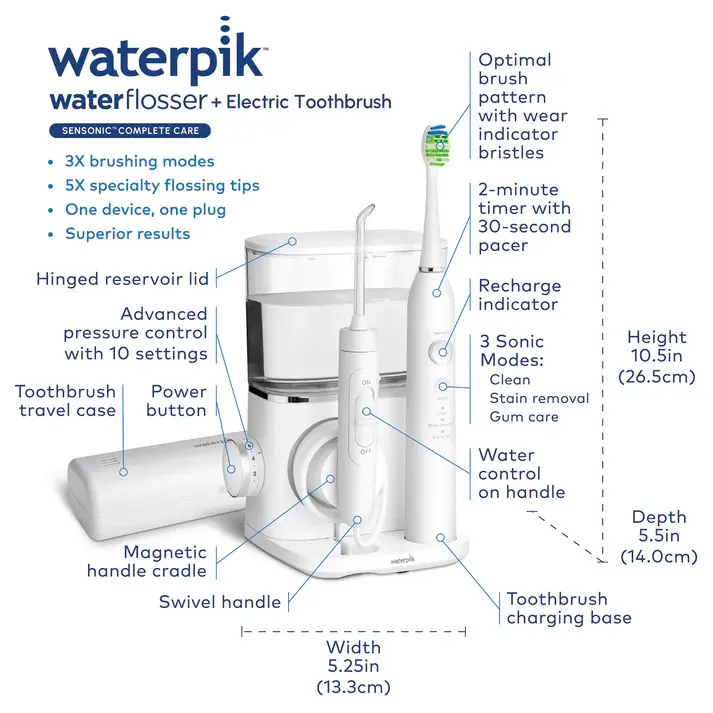 WATERPIK is the #1 water flosser brand recommended by dental professionals and SENSONIC Complete Care is accepted by the American Dental Association (ADA) for safety and effectiveness.