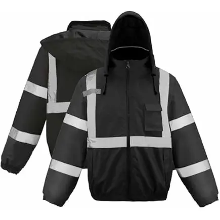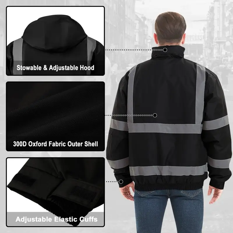 Waterproof Black Jacket with Silver Reflective Elements for Men's Operator Wear Menswear Coats