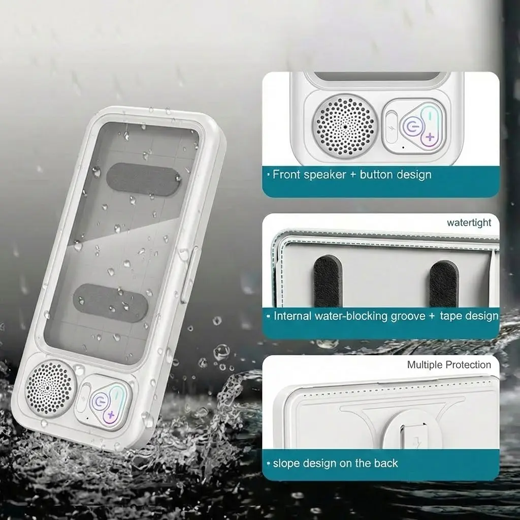 Waterproof box speaker, bathroom waterproof 360 ° rotating touch screen, Bluetooth speaker, watch movies, listen to music, phone holder Bluetooth speaker audio shower TV holder, swimming pool, kitchen, bathroom, sink, Streaming