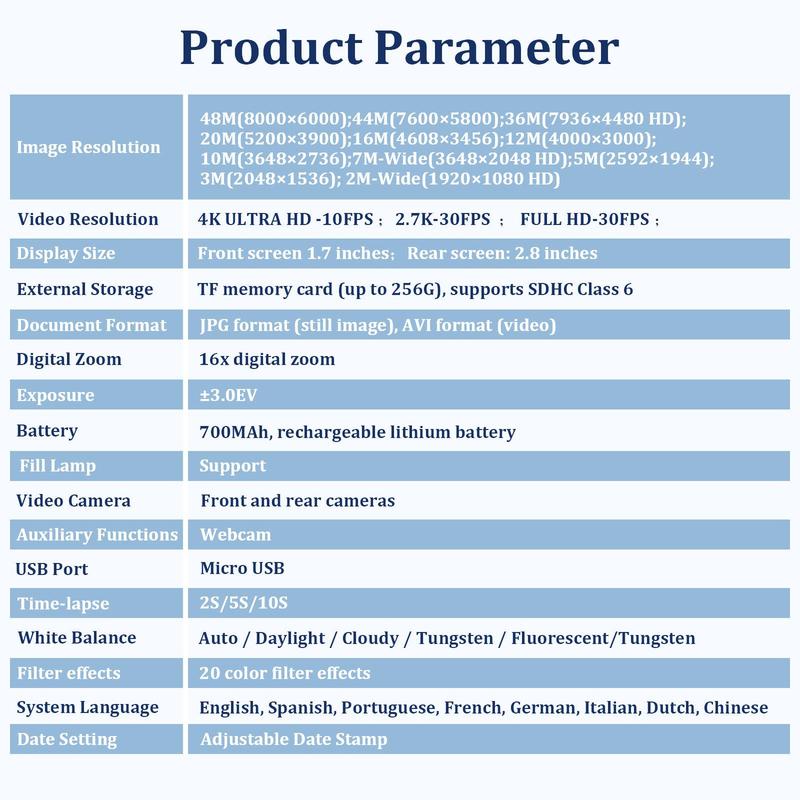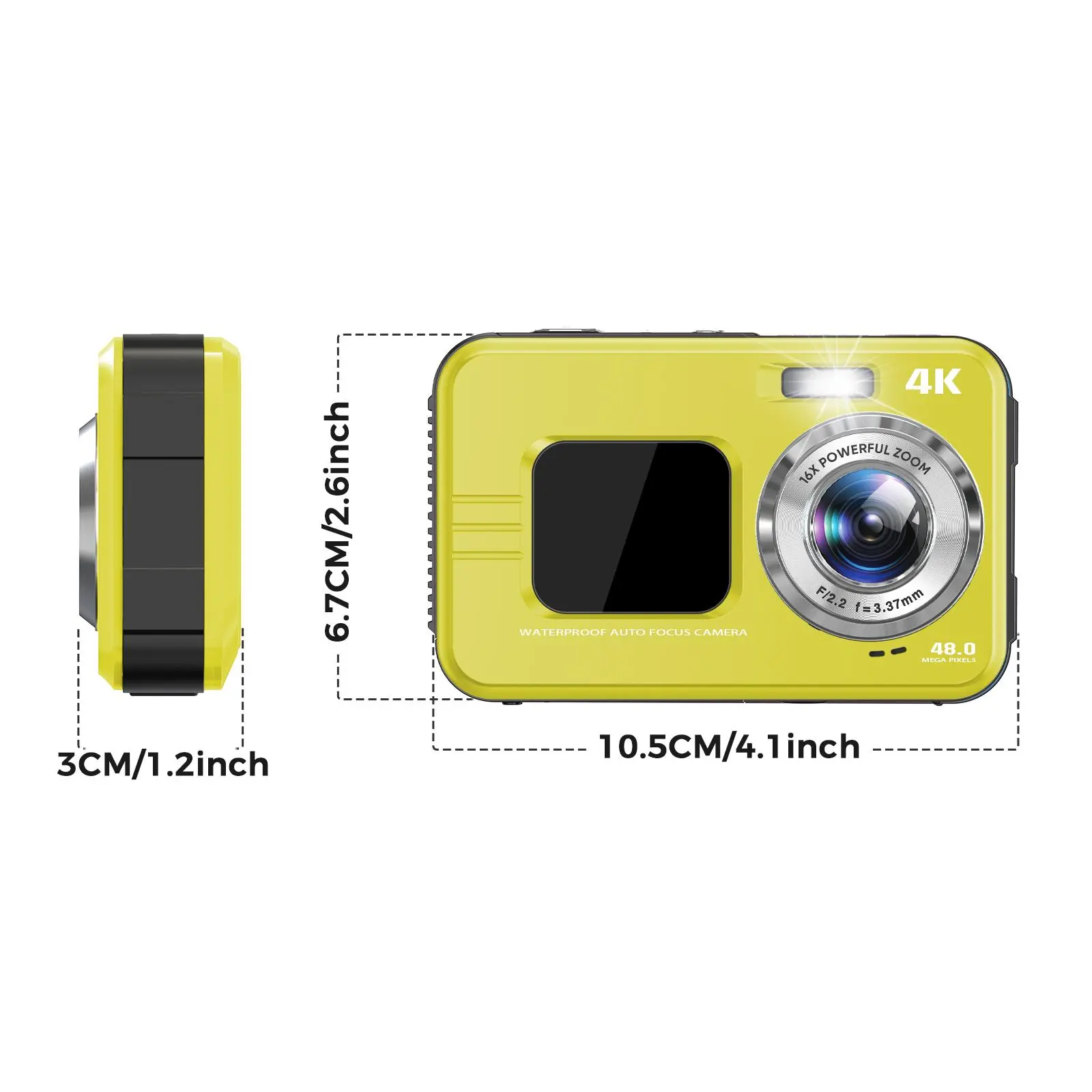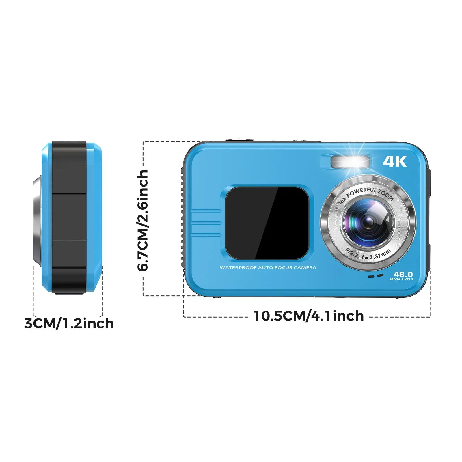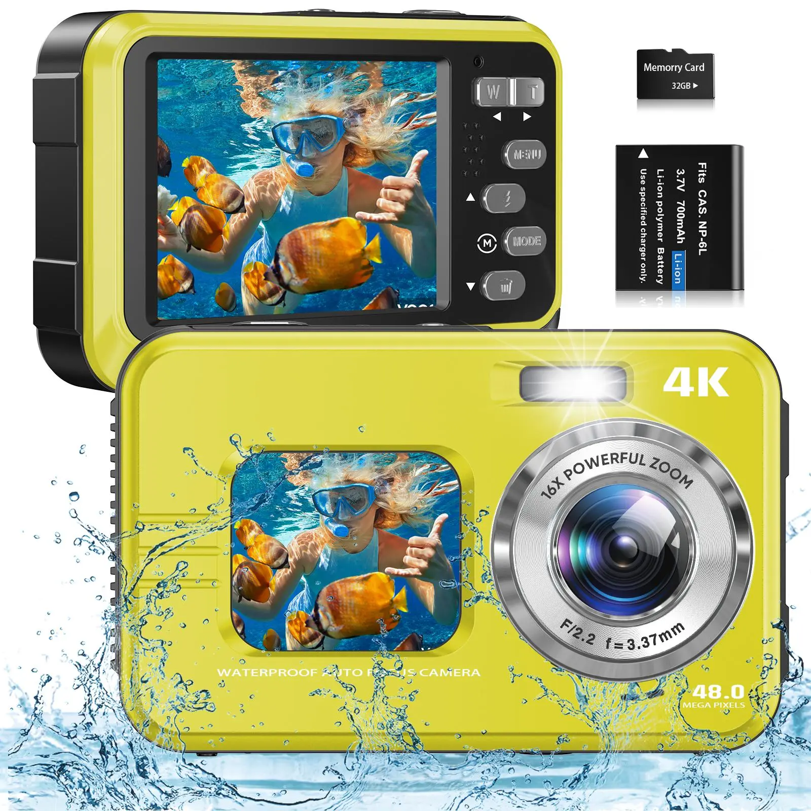 Ever wanted to capture your underwater adventures or everyday moments in stunning detail? This 48MP waterproof digital vlogging camera is your new best friend. Featuring dual screens, you get a clear view from both front and back, making framing selfies or tricky shots easier than ever. With 16X digital zoom and 10FT waterproof capability, you can dive deep and zoom in close without worrying about missing a moment. The camera shoots crisp 4K video, perfect for creating high-quality content whether you're underwater or on land. Designed with beginners in mind, its easy-to-use controls and auto-focus technology mean you spend less time fiddling and more time capturing. Included in the box is the camera itself with a rechargeable lithium-ion battery, so you’re ready to shoot right out of the gate. Lightweight and portable, this handheld gadget fits perfectly in your travel bag or pocket. Ready to make waves with your photography? Grab this versatile camera and start creating unforgettable memories today!