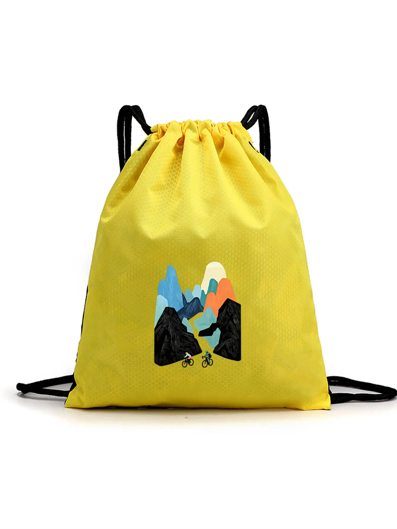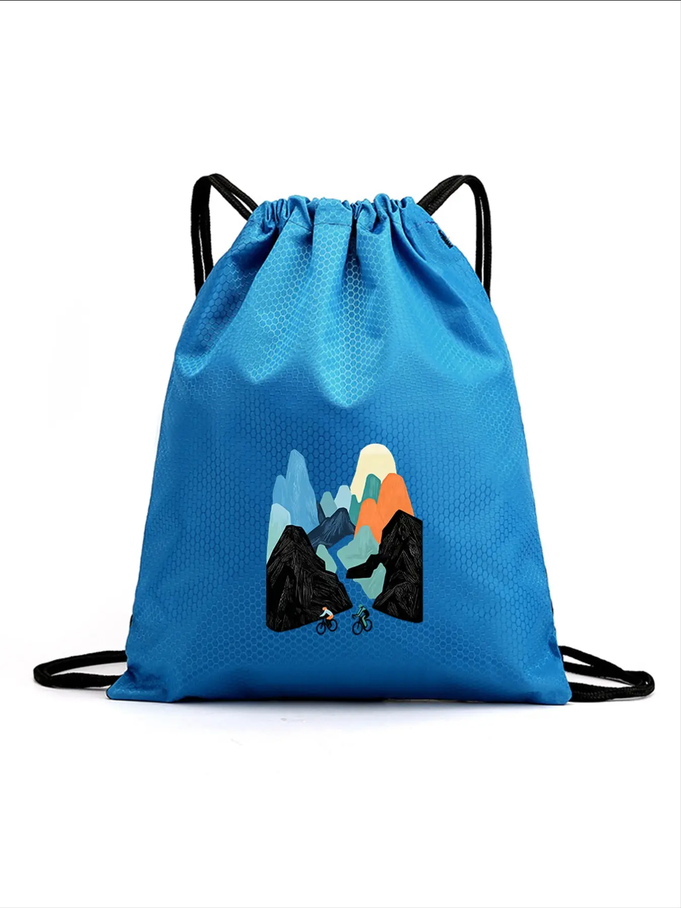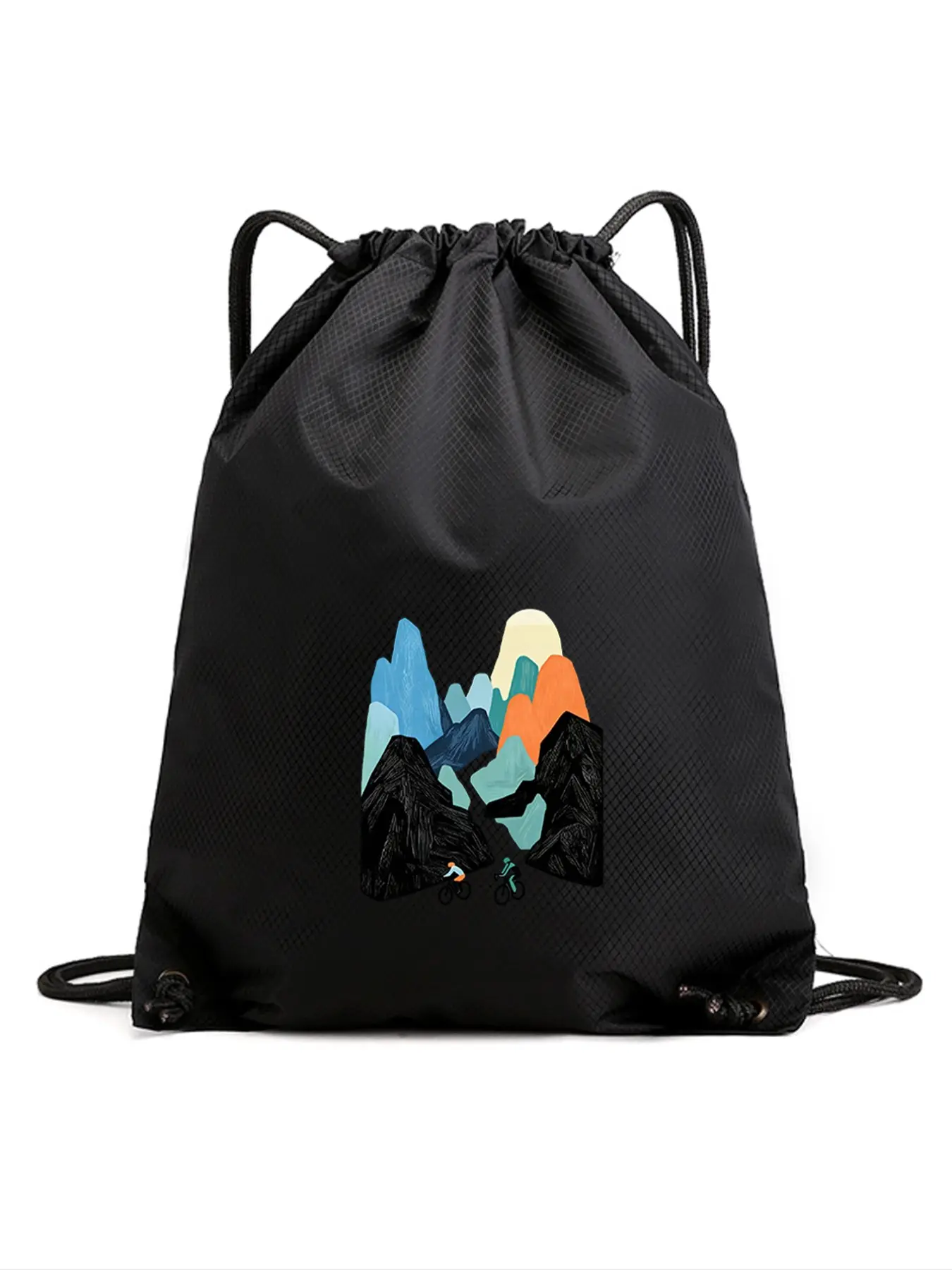 Waterproof Drawstring Backpack with Mountain Pattern, Lightweight Gym Bag for Football Basketball School Sports Travel, Boy Girl Birthday Gift