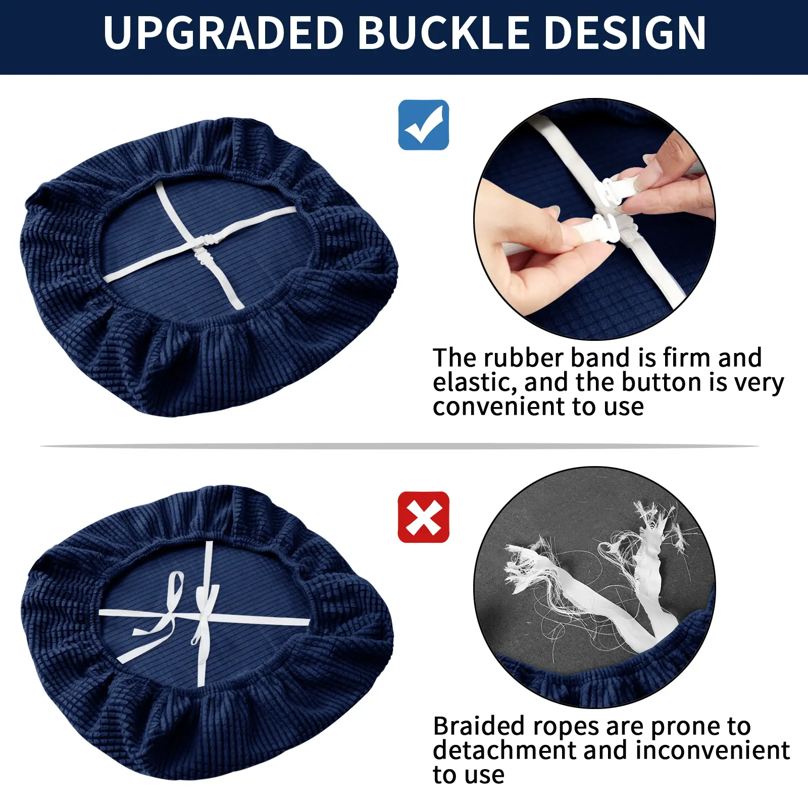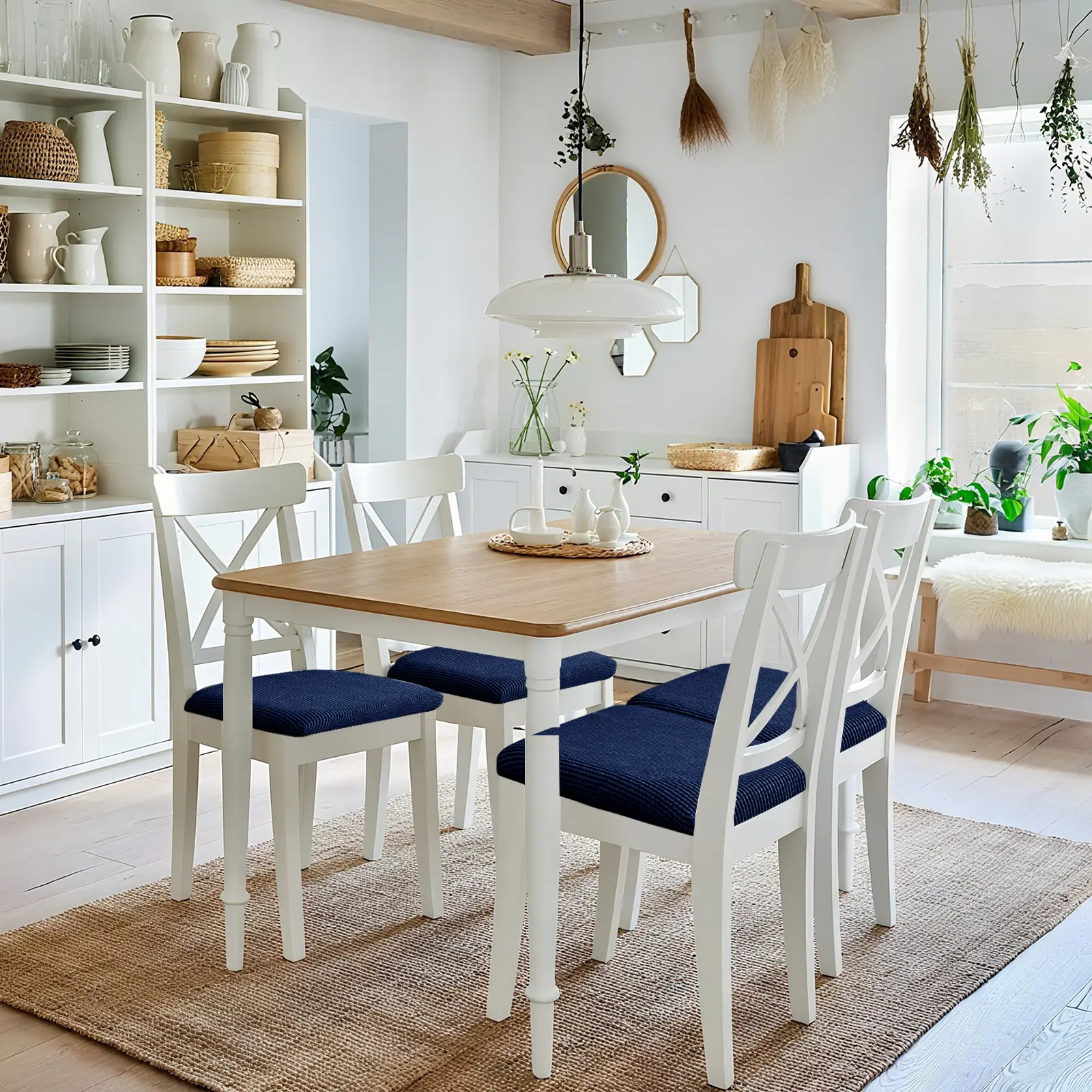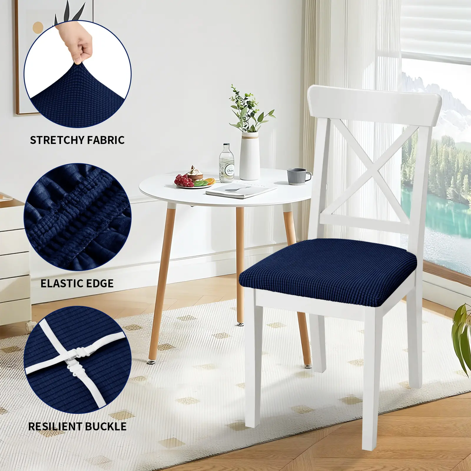 Non-slip chair covers: The elastic fabric edges sewn on the dining chair covers provide a secure and comfortable fit, ensuring that the chair covers can cover your chair cushions well. The chair back is equipped with four sturdy straps to ensure that the chair covers are firmly fixed and will not slip during use.