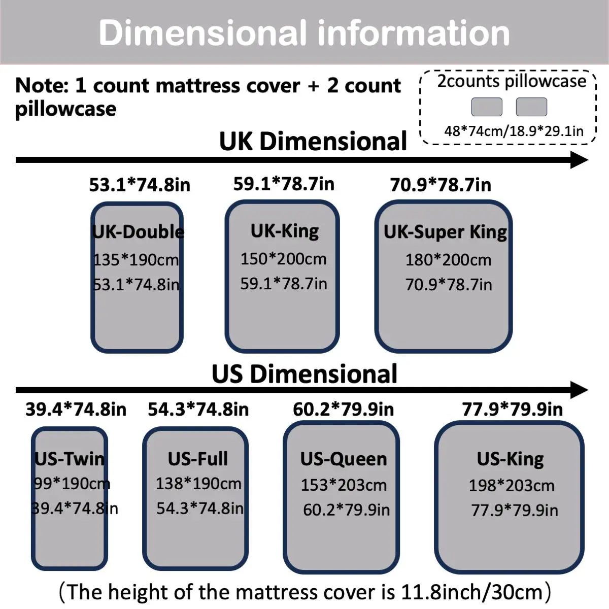 Dark Gray, US-Queen(153*203+30cm/60.2*79.9)