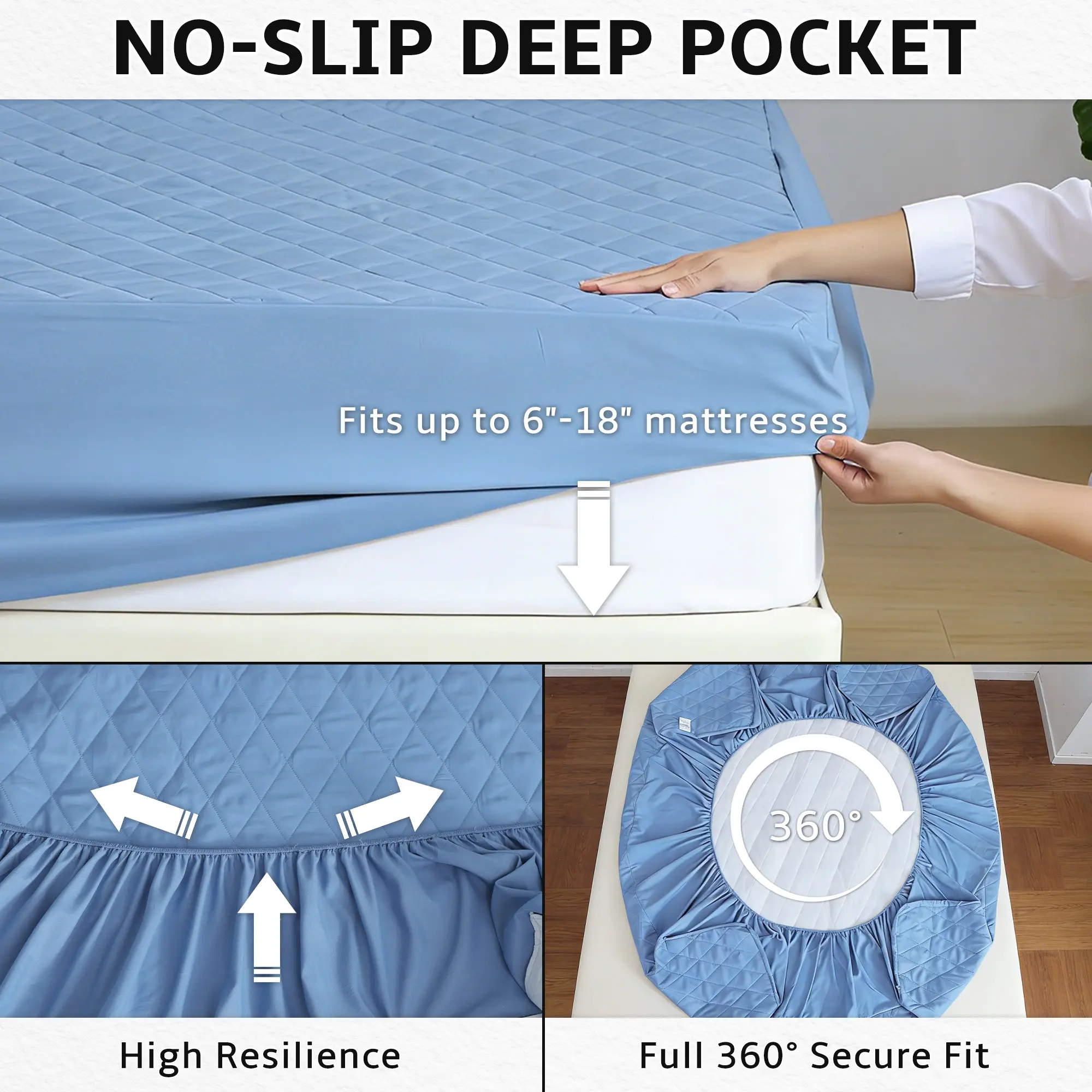 ·【360° Snug Fit & Full Protection】 Designed to wrap your mattress like a second skin!It fits perfectly on mattresses ranging from 6" to 16" thick, ensuring complete coverage from top to sides. No more shifting or bunching - just reliable protection all night long.