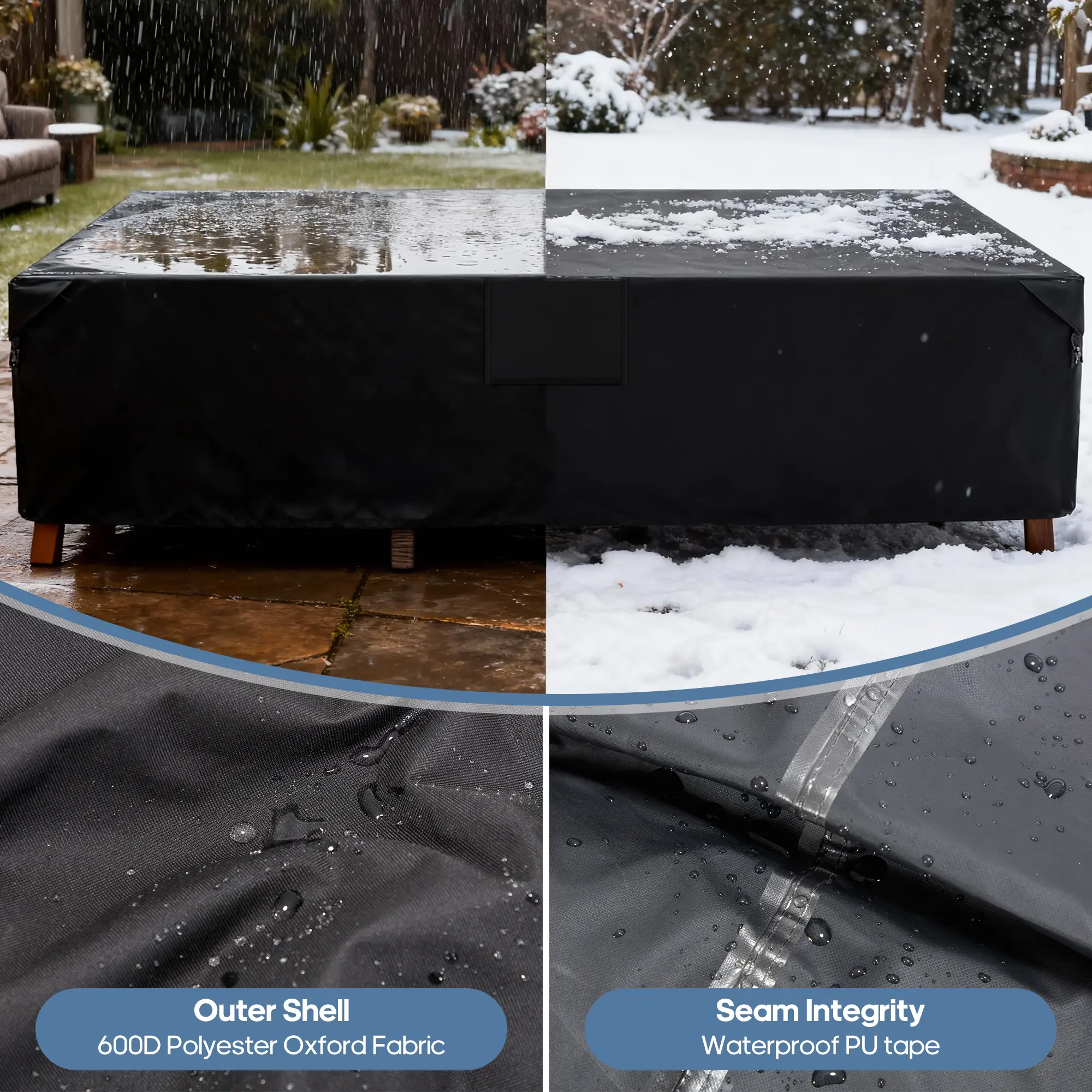 ·Made of 600D polyester canvas complex with waterproof backing. Tough enough to keep rain, hail, snow, dust, leaves and bird droppings away.