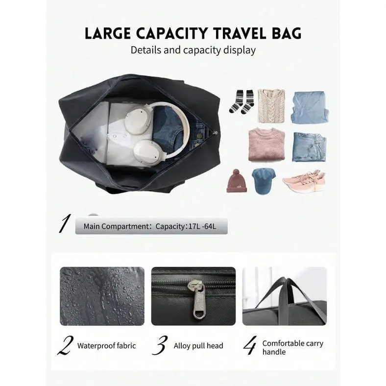 ·4 Size Options for Every Need: Small: Perfect for daily essentials, short errands, or as a personal item on flights.Medium: Ideal for 1-2 day trips or gym gear (fits workout clothes + sneakers).Large: Great for weekend getaways or storing seasonal home items.Extra Large: Perfect for extended travel, family trips, or bulk storage.