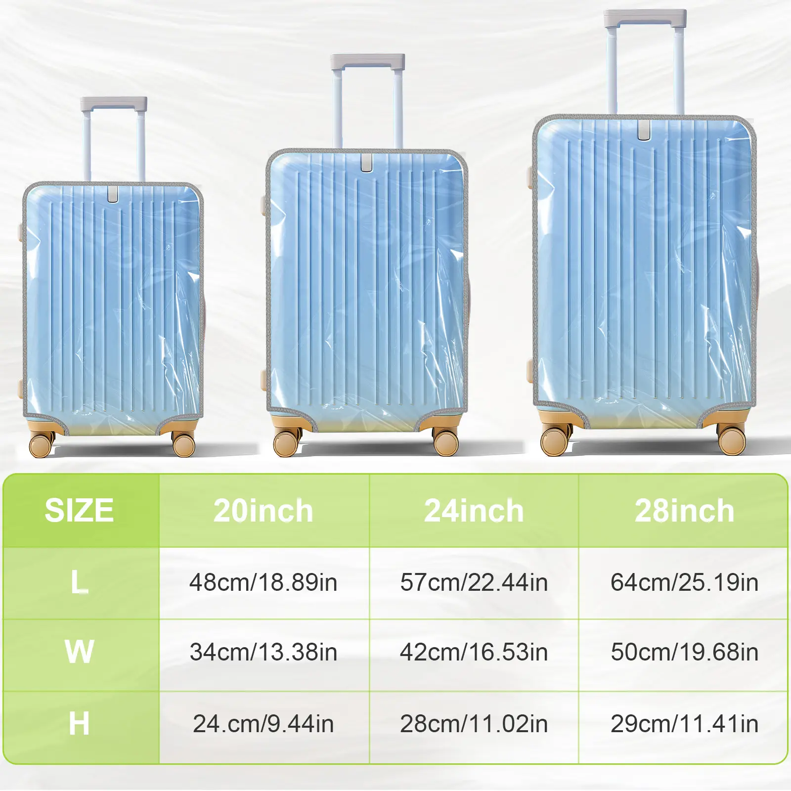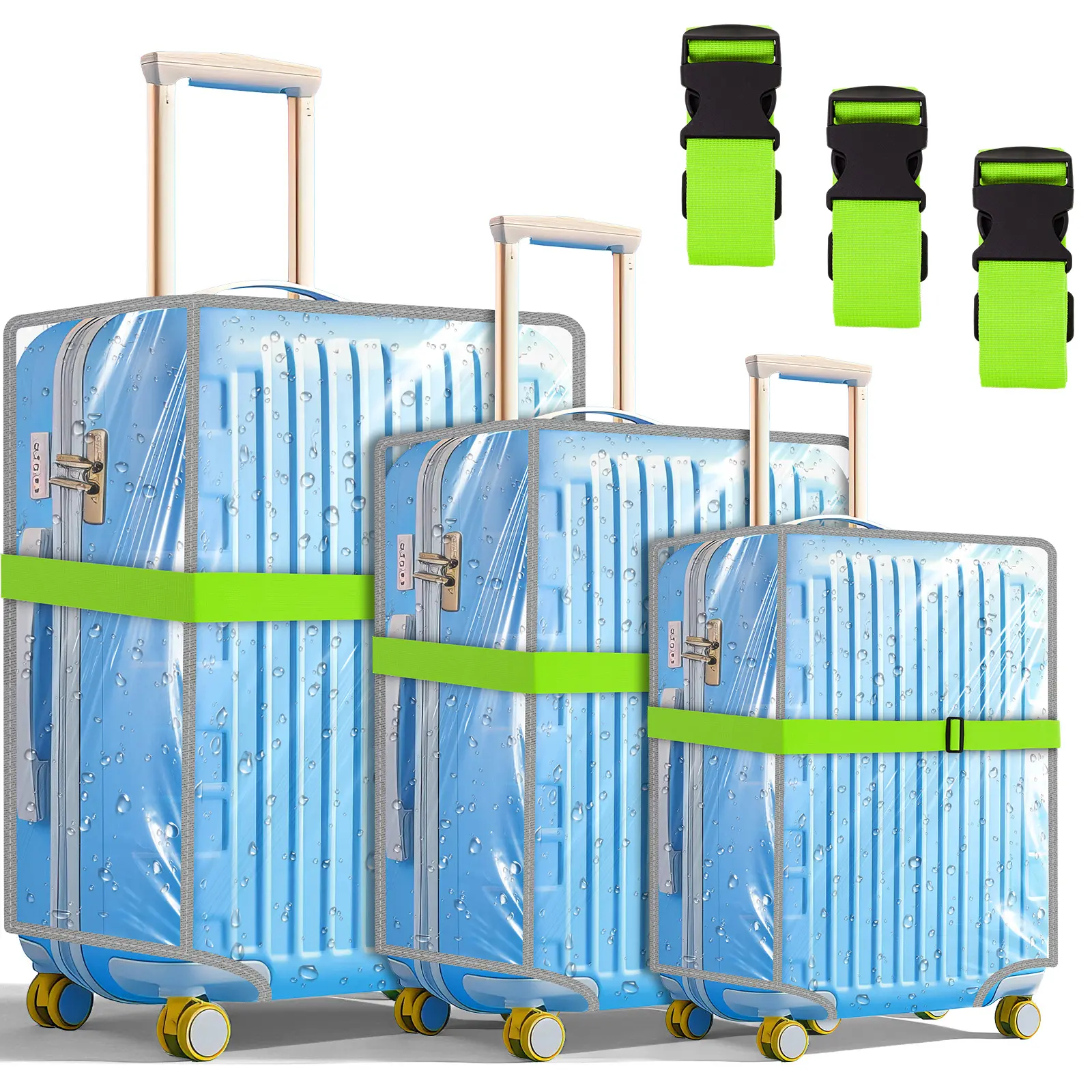 Waterproof Pvc Luggage Cover Set Includes 3 Transparent Luggage Covers and 3 Adjustable Luggage Straps, Suitable for 20, 24, and 28-Inch Suitcases.