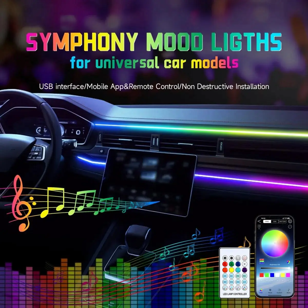 🌟 Control with App & Remote: Enjoy the convenience of remote control. The kit includes an app for easy management. Adjust the lighting settings from anywhere, anytime. No more fumbling with controls while driving.