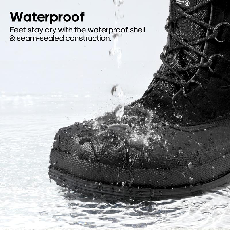 Work in freezing temperatures without sacrificing comfort. These men's waterproof winter snow boots balance style and functionality. They are essential for productivity, relaxation, and well-being. Invest in these boots for enhanced comfort and productivity. The boot opening is approximately 13" around, ensuring a snug fit.