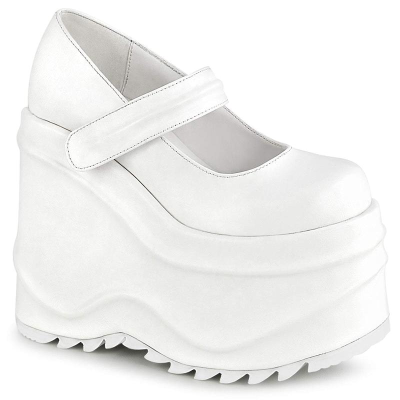 Demonia Wave-32 White Vegan Leather Platforms