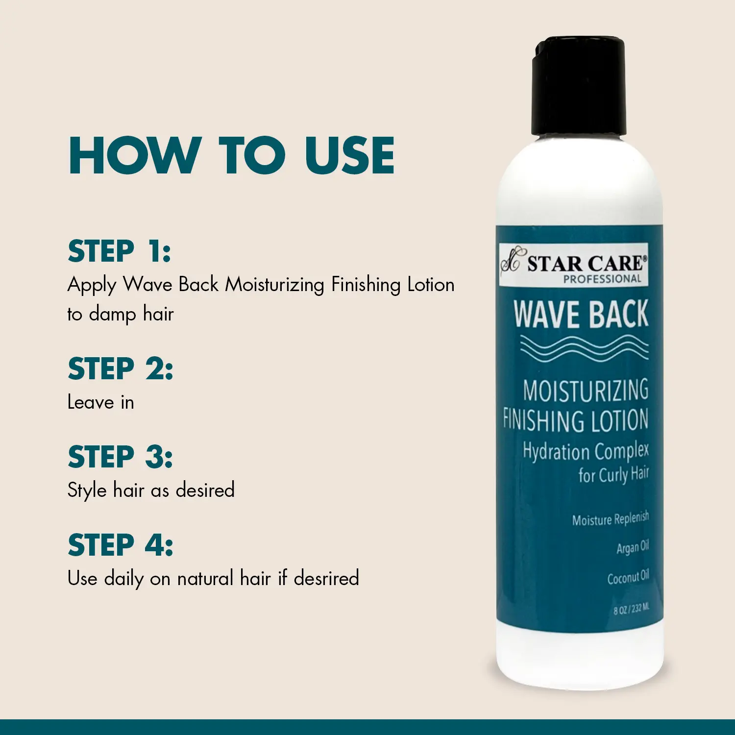 Star Care Professional Wave Back Moisturizing Finishing Lotion for Curly Hair 8oz/ 232ml