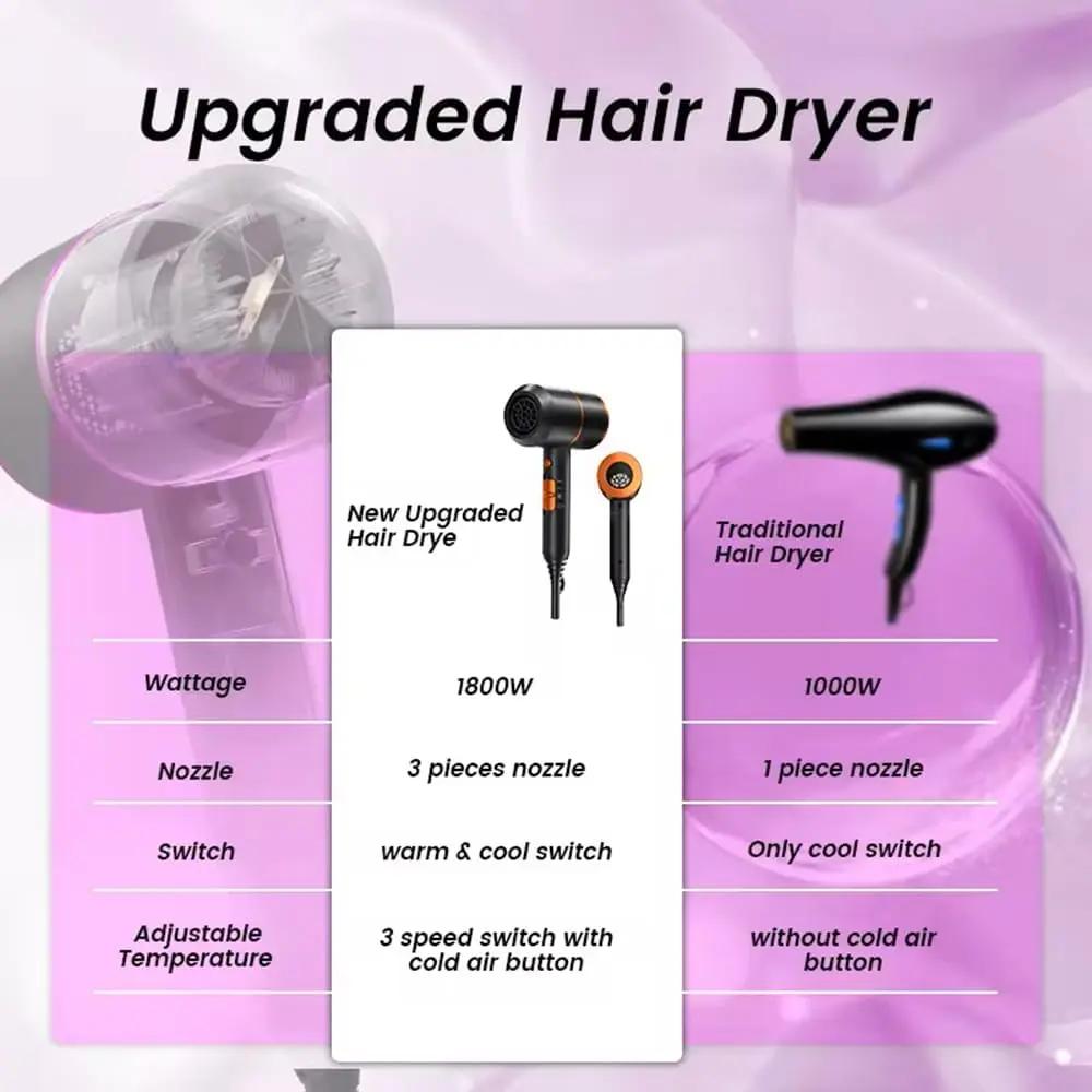 ·【Deeply Protect Hair from Damaged】Hair care and low-radiation. The hair is protected at a constant temperature, evenly dried, no damaged. And Air outlet electromagnetic low radiation.