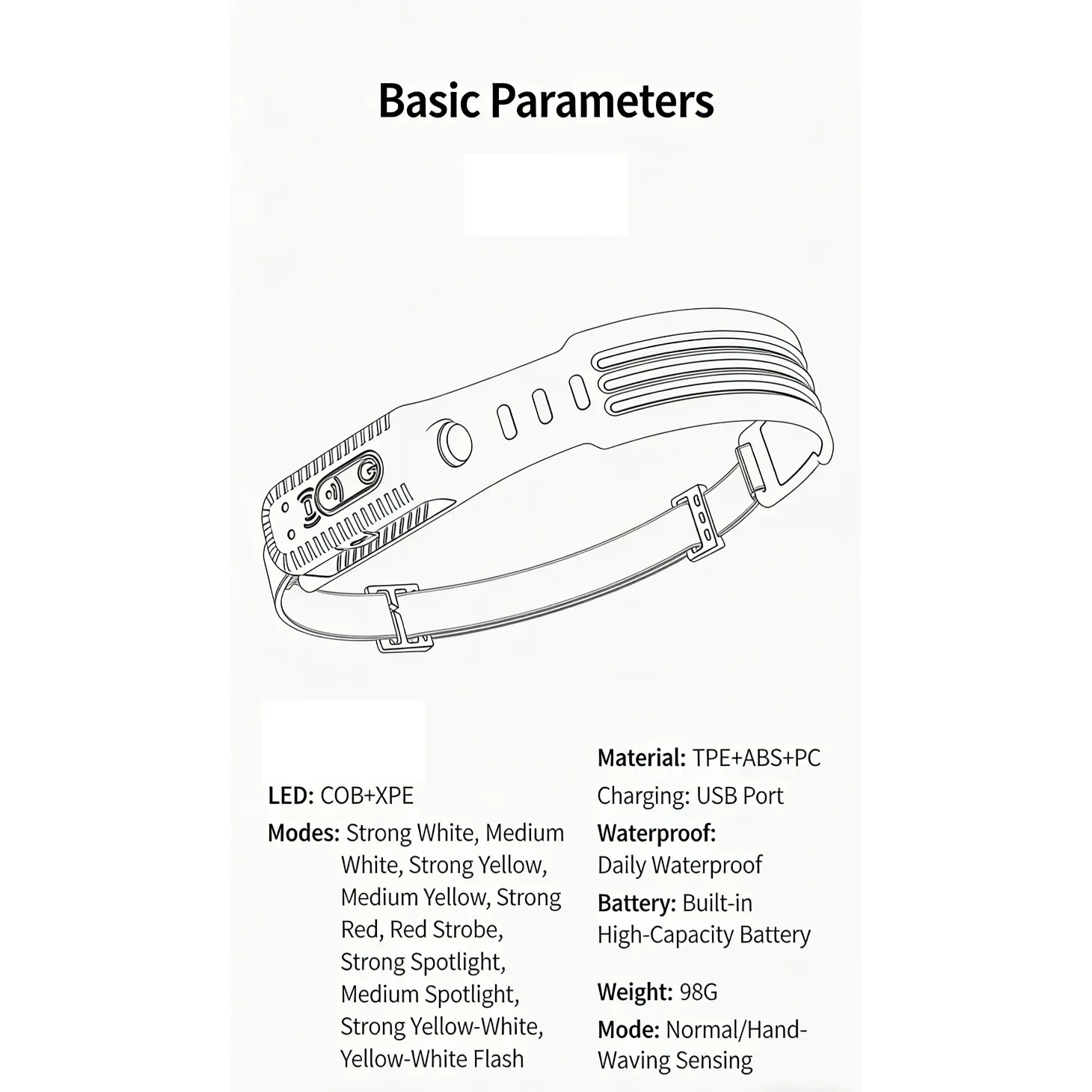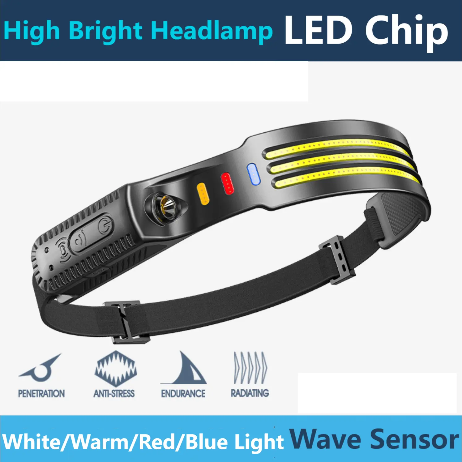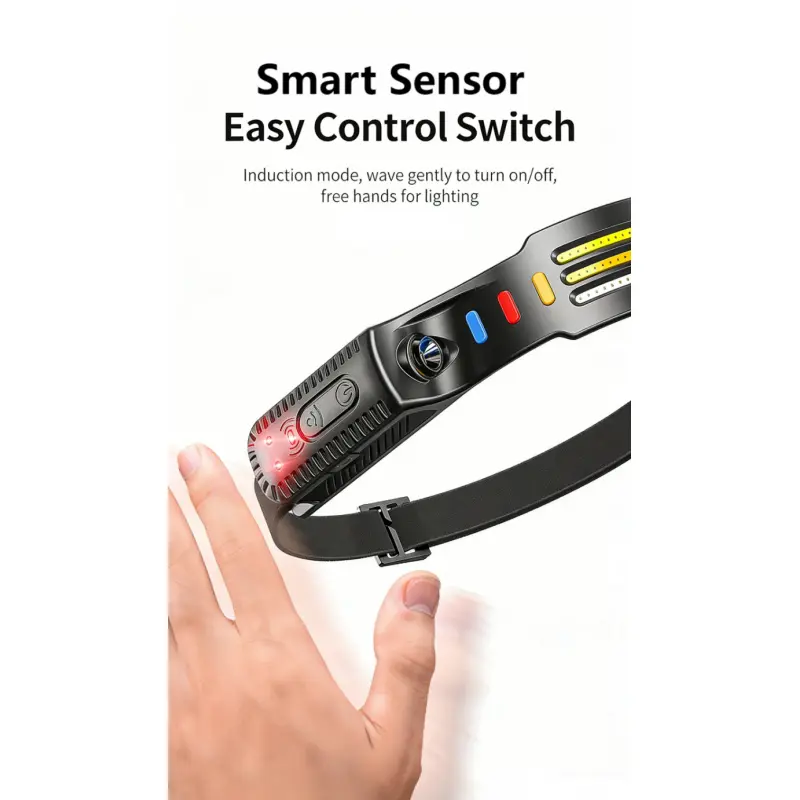 Wave Sensor LED Headlamp, Multi Mode Adjustable, Multi Light Source, High Lumens Outdoor Headlight for Camping Hiking
