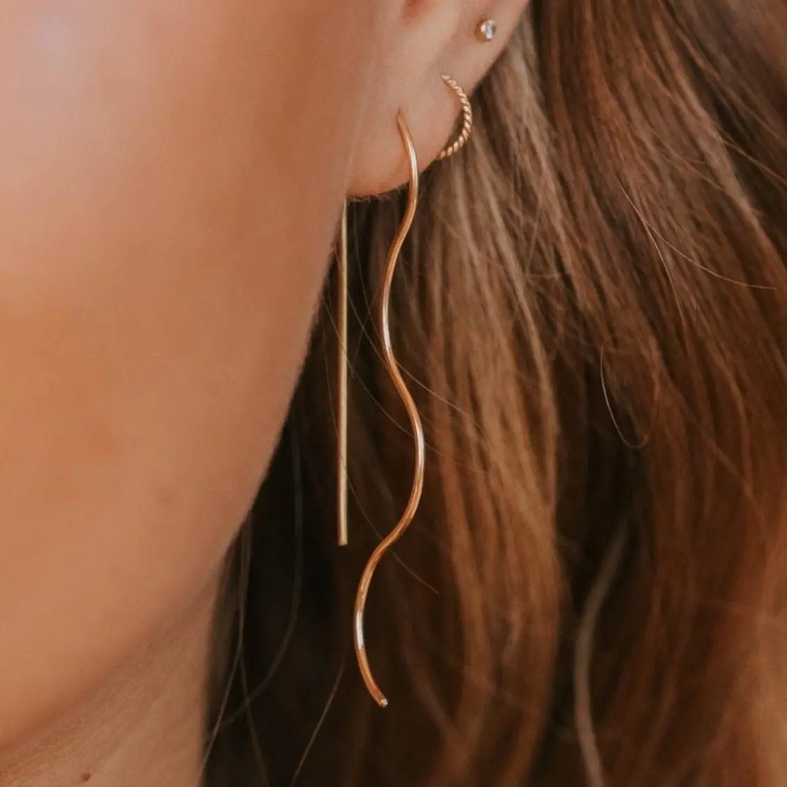 5. Wave Threaders - Handmade 2" Earrings in 14kt Gold Fill & Sterling Silver, 18g Gauge, Unique Design, Manufacturer Warranty