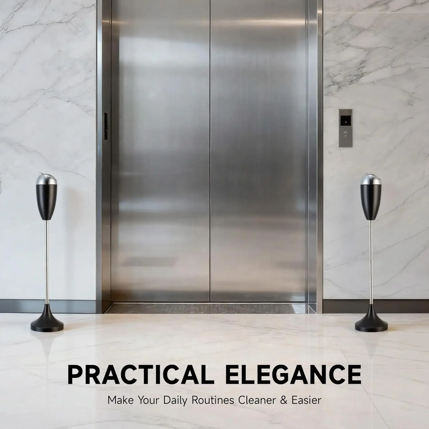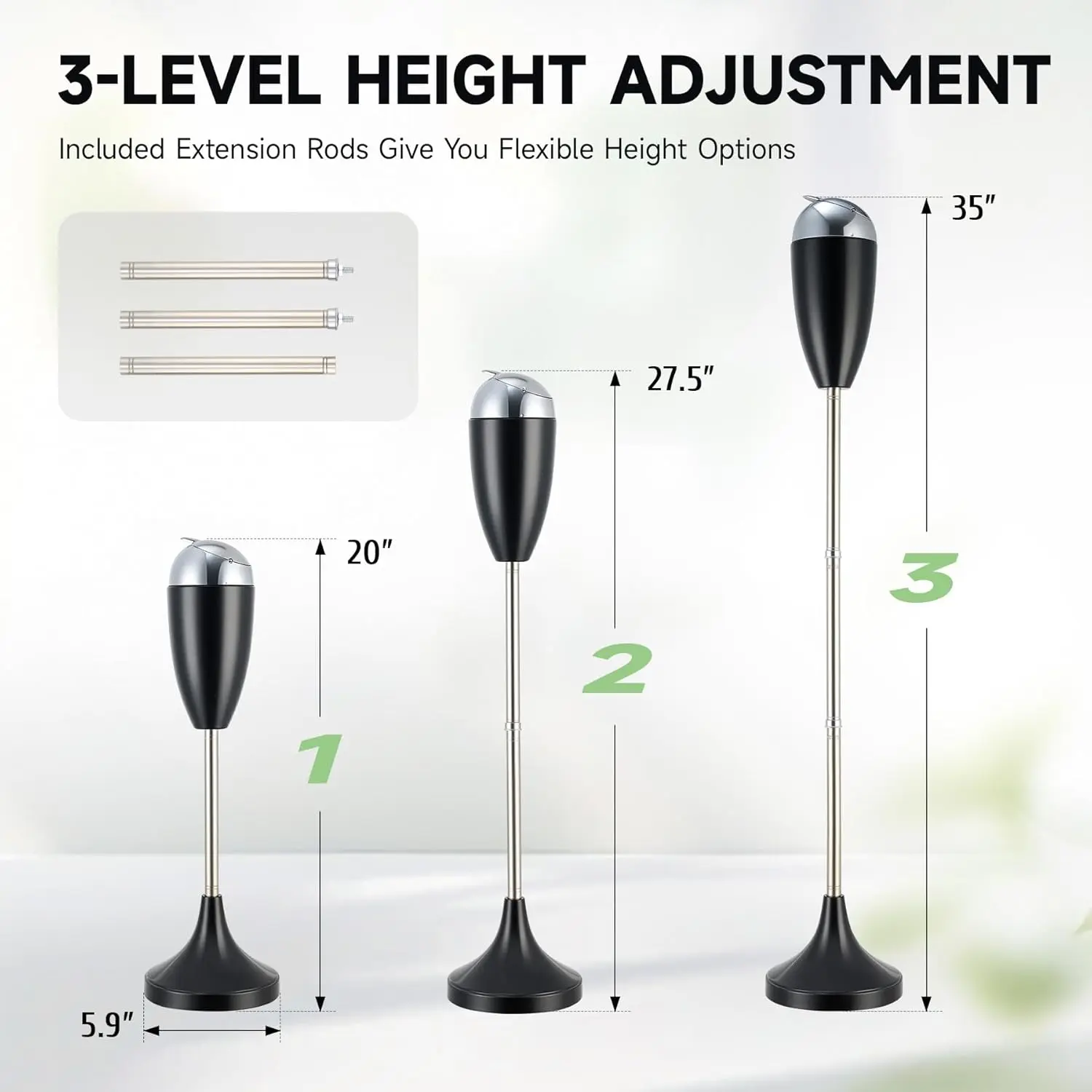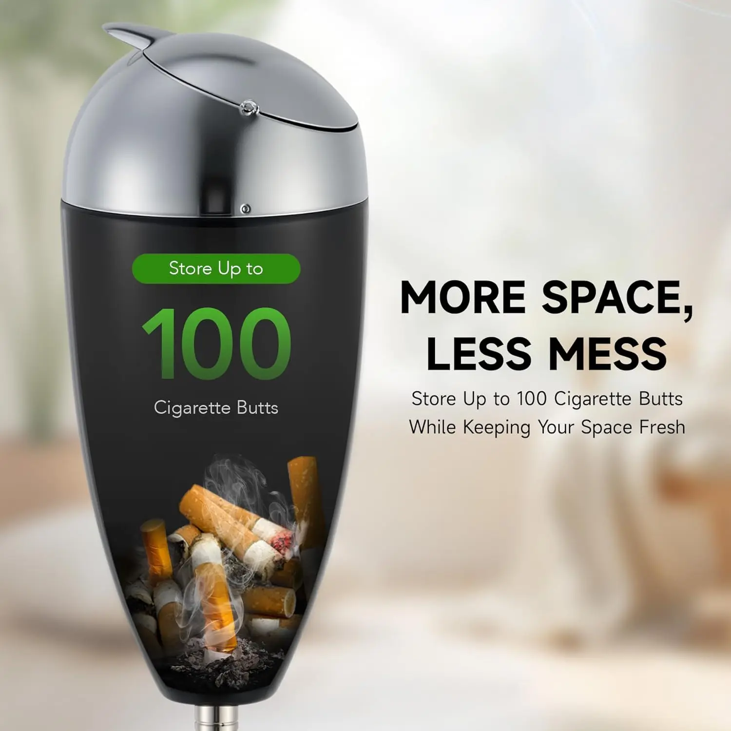 Waveports Adjustable Ashtray, Smokeless Odorless Indoor Outdoor Floor Standing Ash Tray with Lid for Home Patio Cigarettes Ash Butt Disposal, Windproof Balcony Ashtray in 20", 27.5", 35" Heights, Black