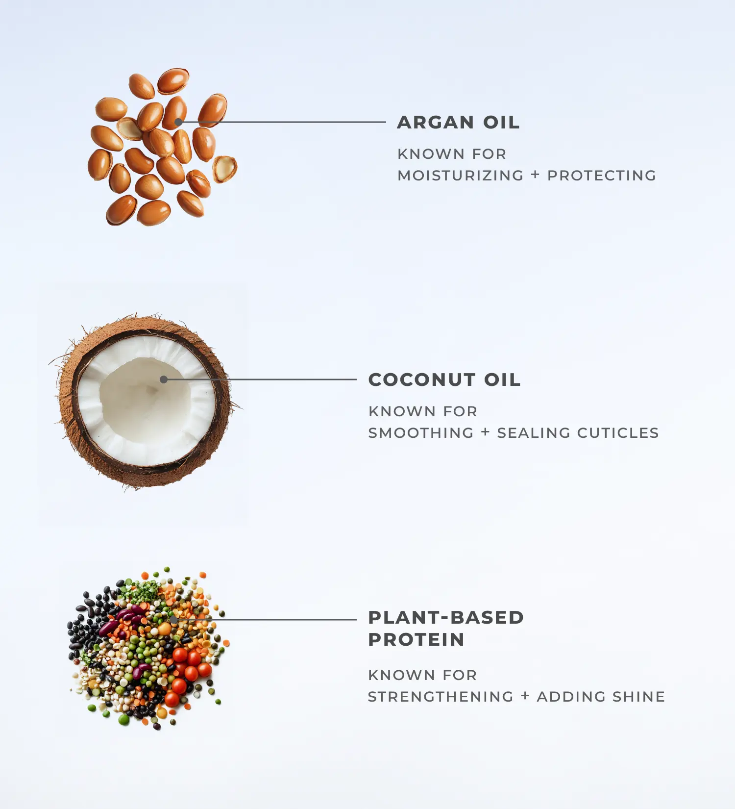 ·Argan Oil: high in antioxidants, essential fatty acids, and vitamin E, that provide moisturizing nourishment and smoothing benefits for stronger looking strands.