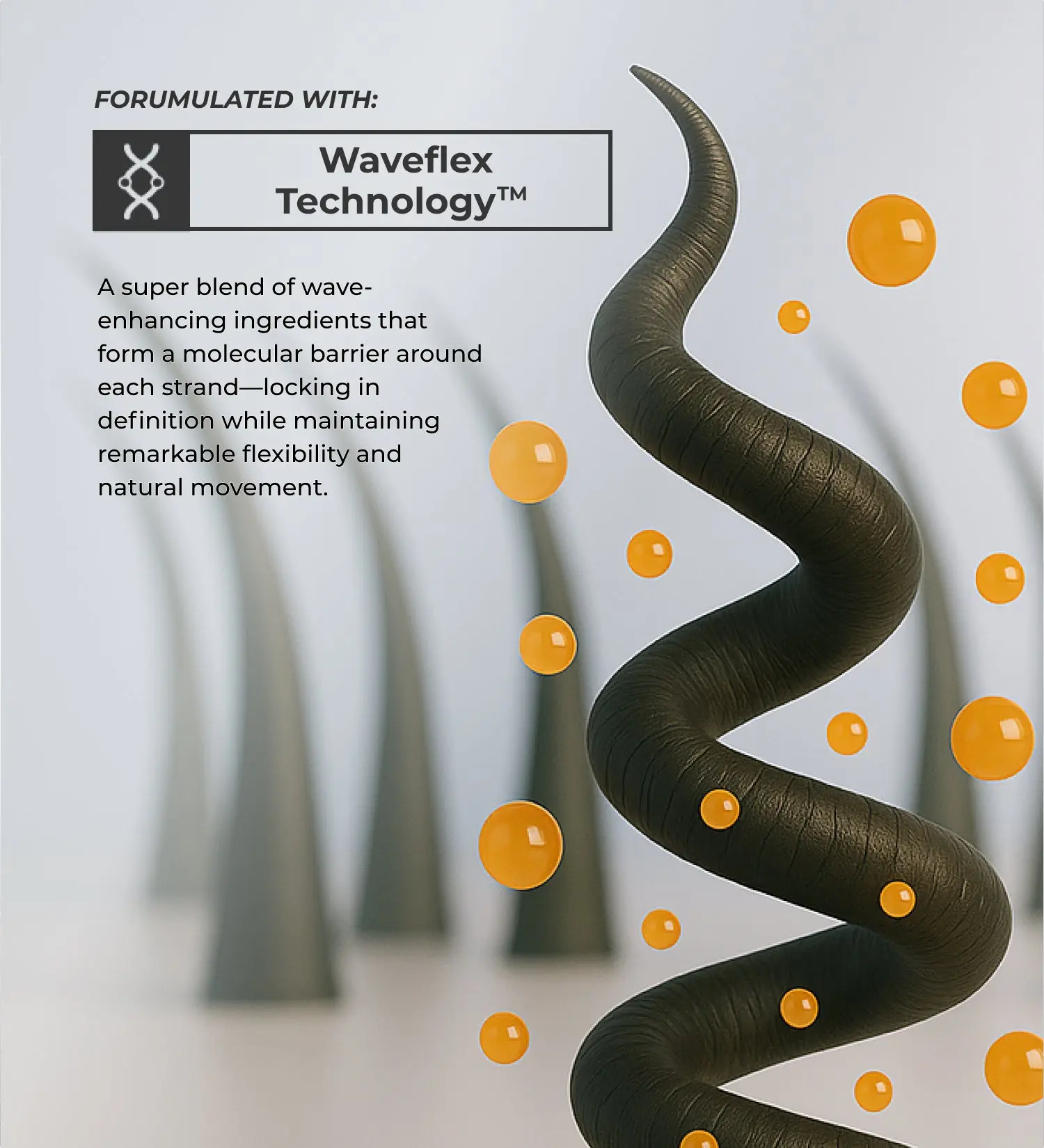 ·Waveflex Technology™: a super blend of wave forming ingredients that create a molecular barrier on the hair strand for defined waves with remarkable flexibility.