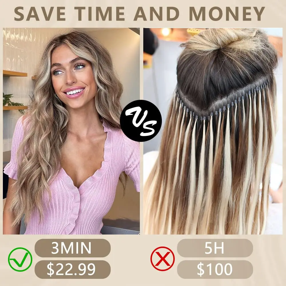 ·【Easy to Wear】The wavy hair extension piece can be fixed without tape and glue. It only takes a few minutes to get a new hairstyle, lengthen your hair, and increase your hair volume.